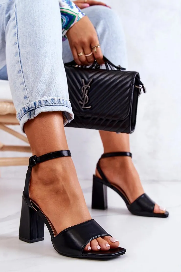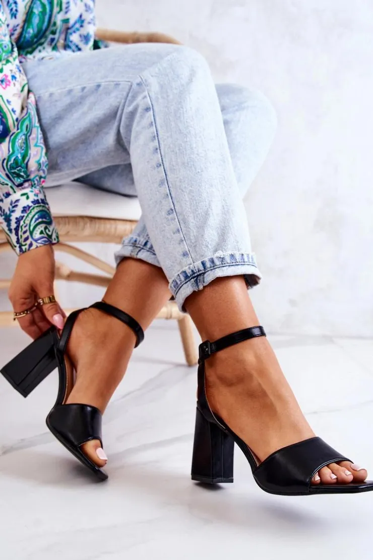 Boto Sandały Na Obcasie*Skórzane Sandałki Na Słupku Czarne Estrella
