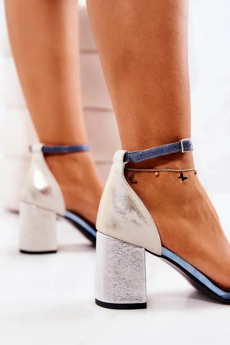 Boto Sandały Na Obcasie*Skórzane Sandałki Na Słupku Przecierane Niebieskie Lorene