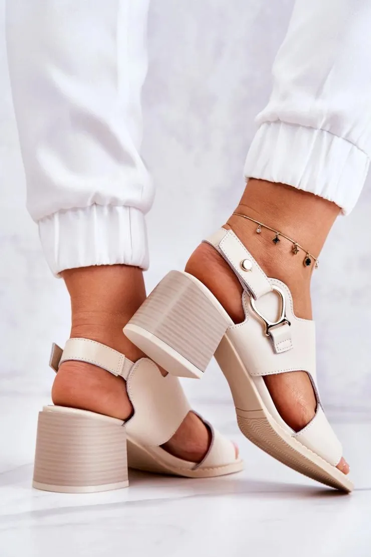 Sandały z odkrytym noskiem i piętą. Osadzone na masywnym słupku. Wykonane z wysokiej jakości eko skóry. Model wsuwany z paseczkiem na gumce, który pozwoli na odpowiednie dopasowanie obuwia. Miękka wkładka została wykonana z naturalnej skóry. Sandały są bardzo komfortowe w użytkowaniu. Styl i fason pasuje do wielu stylizacji. Podeszwa wykonana z tworzywa sztucznego. Ten model powinien znaleźć się w szafie każdej kobiety! Przy wyborze rozmiaru prosimy sugerować się tabelą rozmiarów.