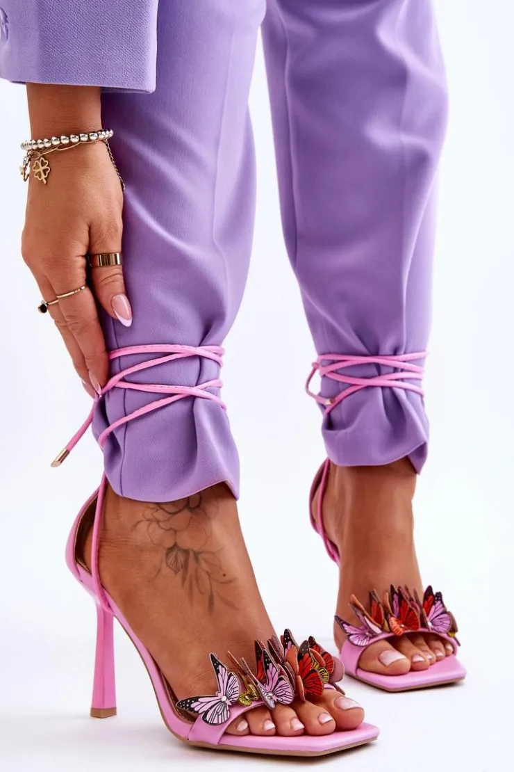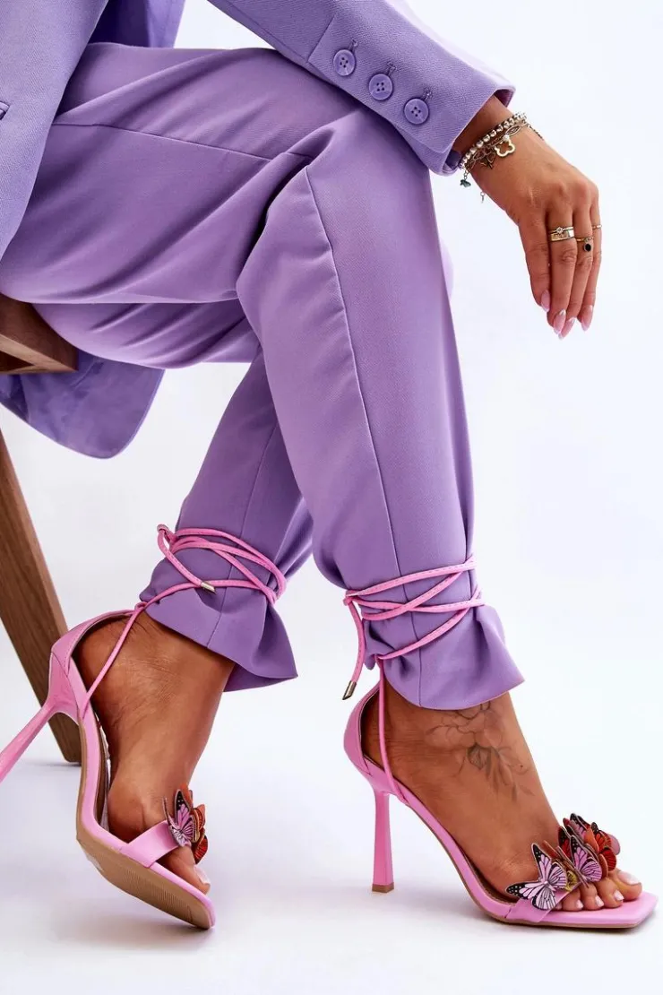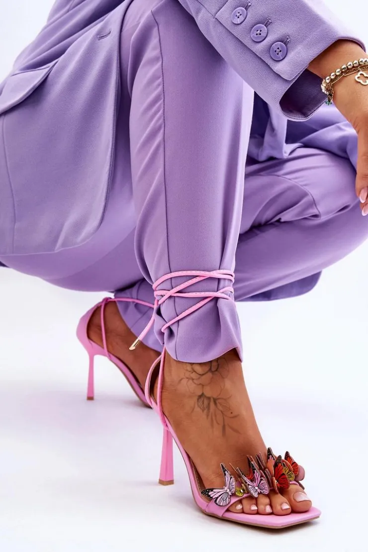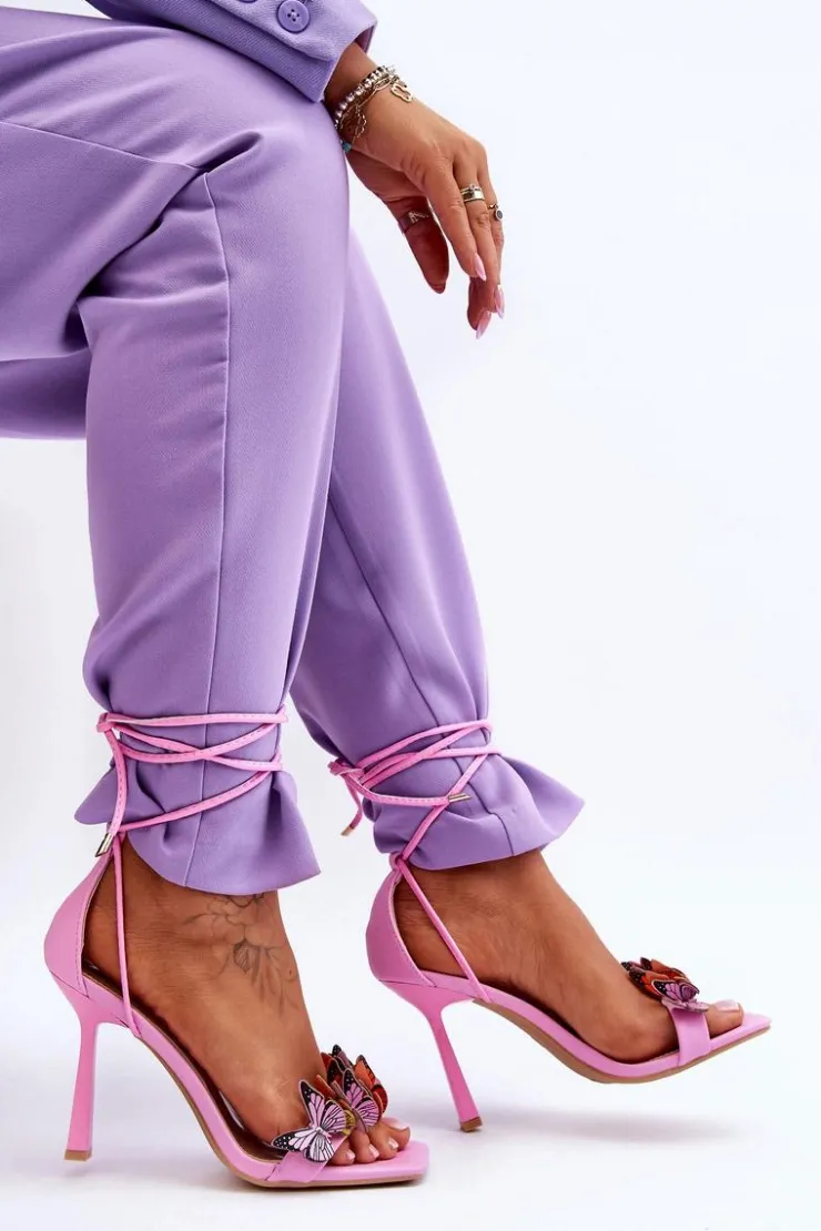 Niesamowite sandałki damskie wykonane z eko skóry posiadają na przodzie urocze motylki. Model ten jest wiązany na wysokości łydki. Dodatkowo zapiętek w tych butach jest usztywniany. Tym modelem urozmaicisz wiele stylizacji! Sandałki zostały osadzone na szpilce. Koniecznie powinny być Twoje! Przy wyborze rozmiaru prosimy sugerować się tabelą rozmiarów.