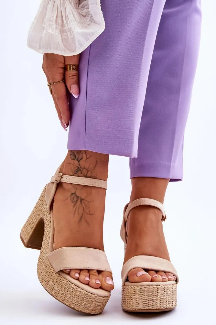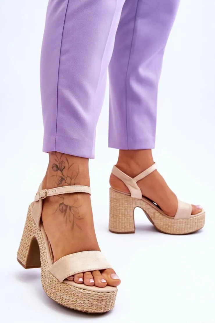 Boto Sandały Na Obcasie*Wygodne Zamszowe Sandały Na Masywnym Słupku Beżowe Elishia