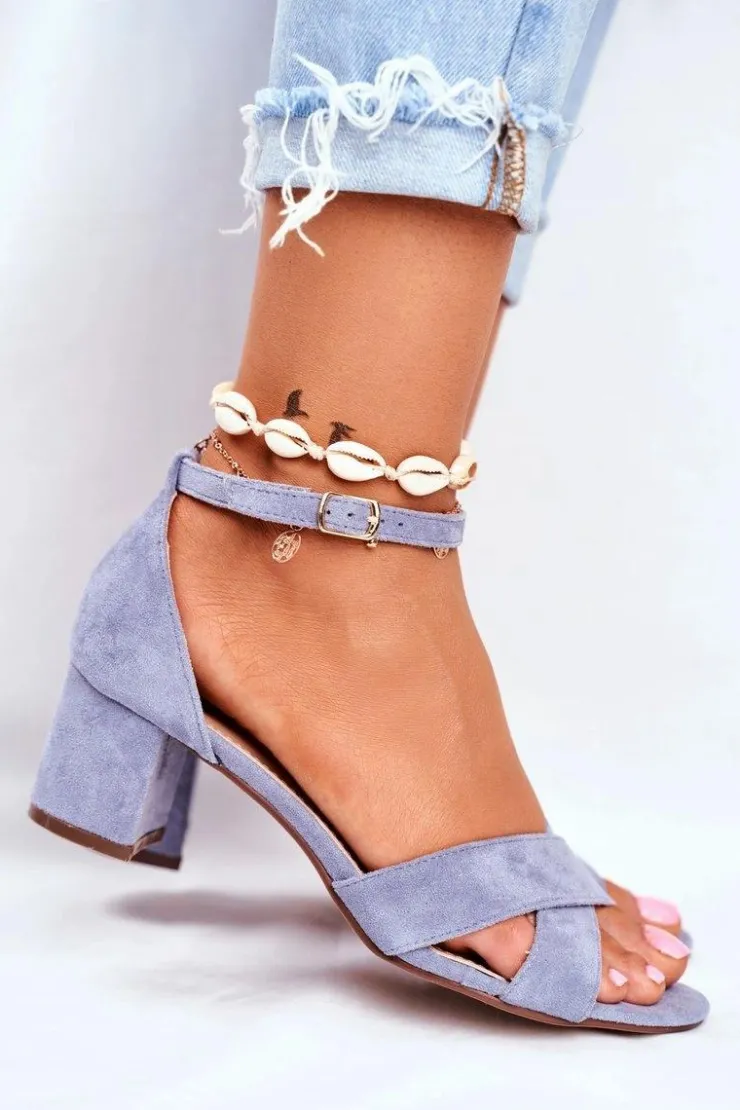 Boto Sandały Na Obcasie*Zamszowe Sandałki na Słupku Niebieskie Nela
