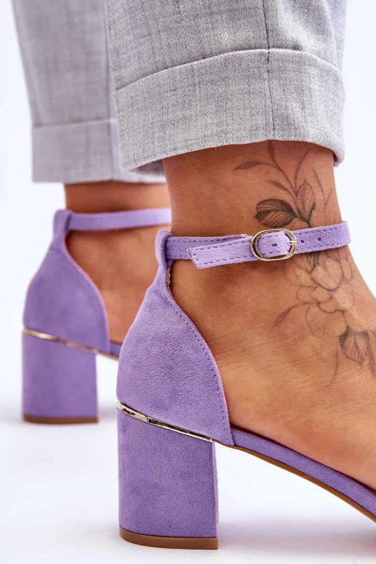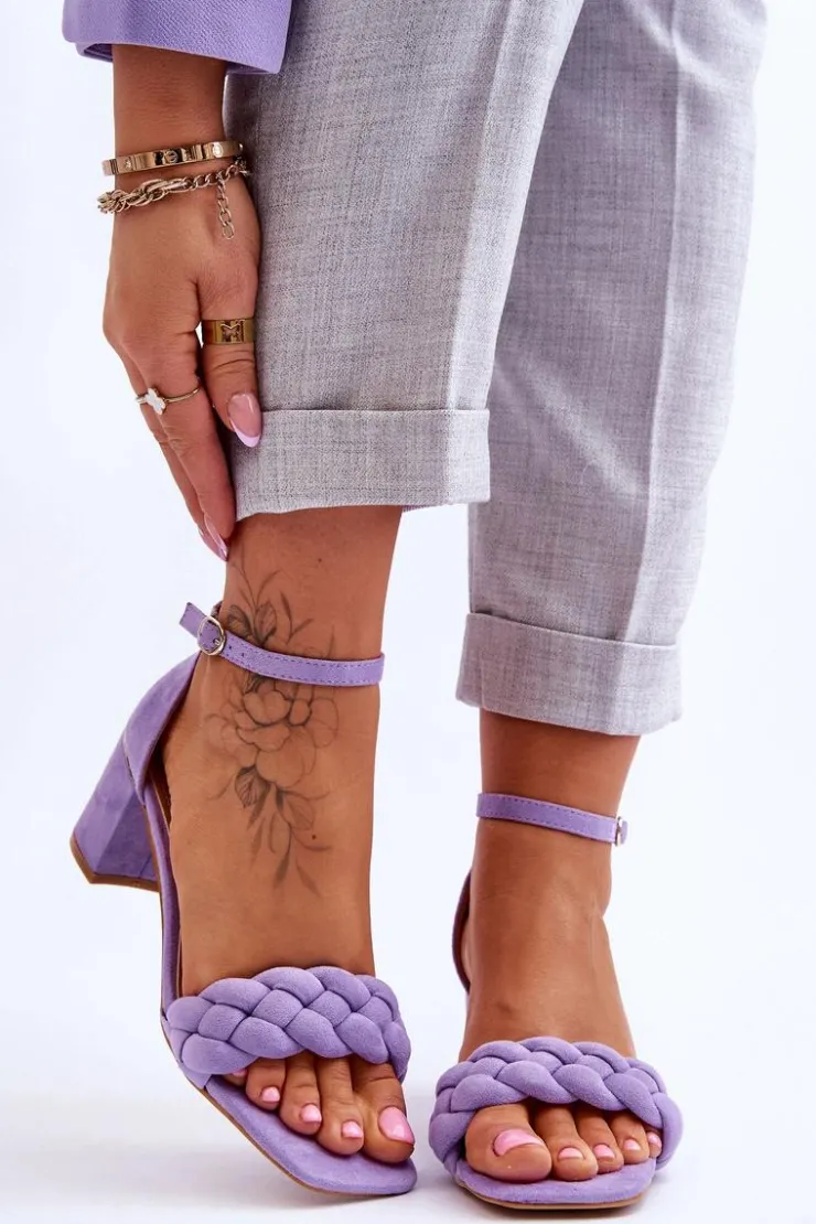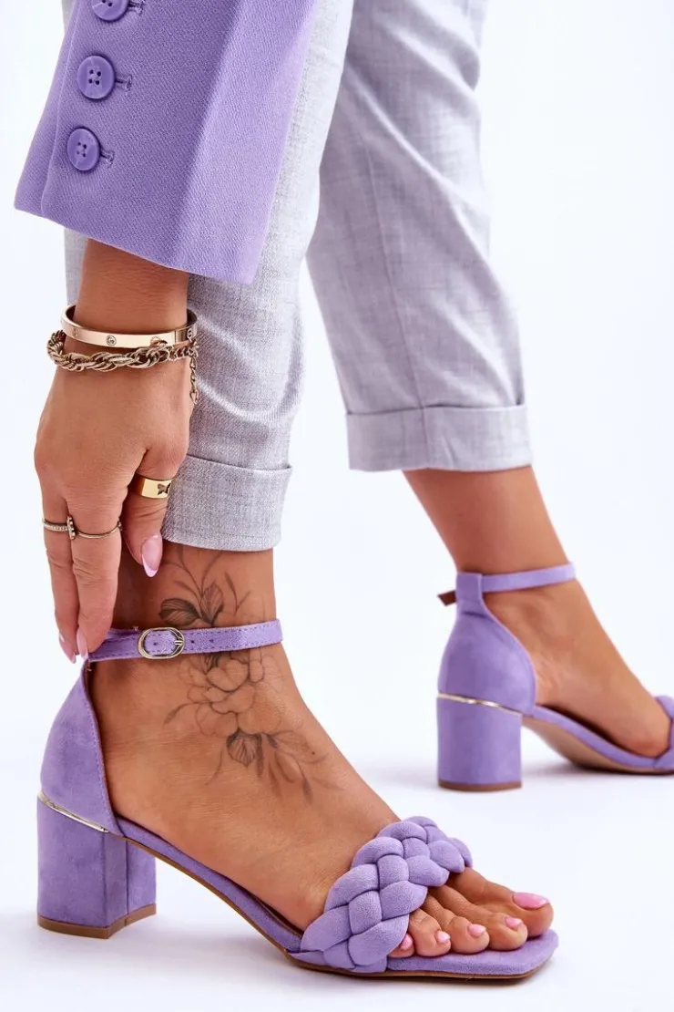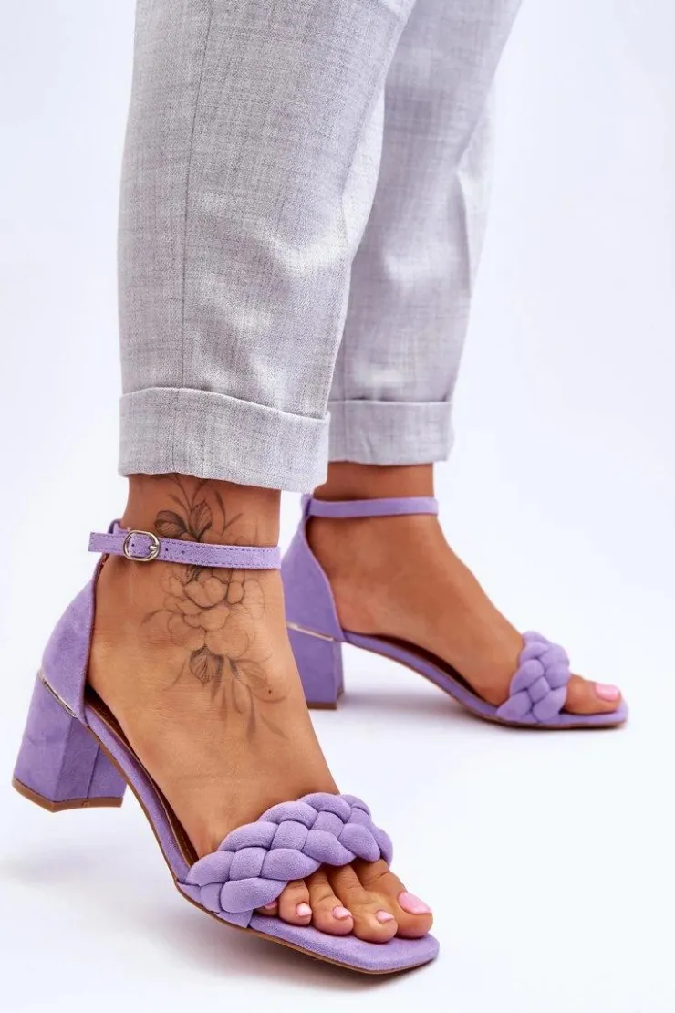 Eleganckie sandały damskie zostały osadzone na obcasie w postaci słupka. Wykonane z miłego w dotyku eko zamszu. Posiadają ozdobny pasek w formie warkocza na przodzie obuwia. Zapinane wokół kostki na sprzączkę z regulowanym paskiem. Miękka wkładka z eko skóry oraz wygodny obcas zapewnią komfort podczas użytkowania. Świetnie sprawdzą się na spotkania biznesowe, uroczystości rodzinne czy romantyczny spacer. Przy wyborze rozmiaru prosimy sugerować się tabelą rozmiarów.