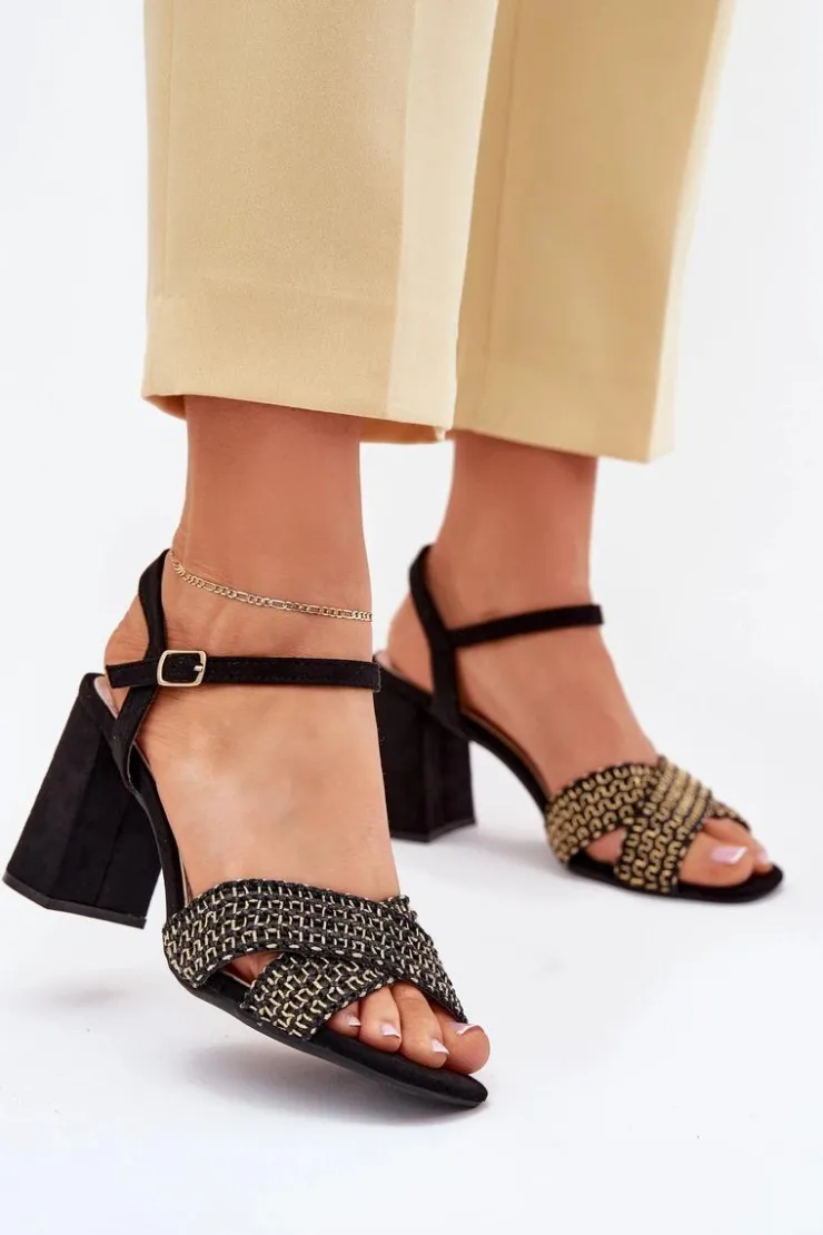 Sandały damskie wykonane z eko zamszu. Osadzone na słupkowym obcasie, który zapewnia stabilność i wygodę przez cały dzień. Zapinane na sprzączkę z regulowanym paskiem, pozwalają na idealne dopasowanie do stopy. Dwa przeplatające się paski z przodu przyciągają wzrok. Doskonałe do letnich sukienek, spódnic czy eleganckich spodni, stanowią idealne uzupełnienie kobiecych stylizacji na każdą okazję. Przy wyborze rozmiaru prosimy sugerować się tabelą rozmiarów.