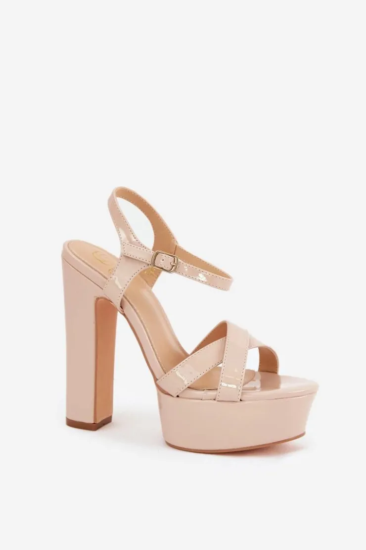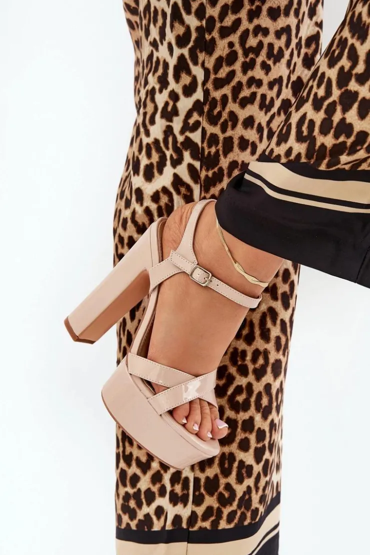 Stylowe sandały damskie na wysokim obcasie słupku i platformie, które łączą elegancję z wygodą. Z przodu dwa przeplatające się paseczki. Zapinane wokół kostki na sprzączkę z regulowanym paskiem, co pozwala na idealne dopasowanie do stopy. Te sandały będą doskonałym wyborem na różne okazje oraz wieczorne wyjścia. Przy wyborze rozmiaru prosimy sugerować się tabelą rozmiarów.
