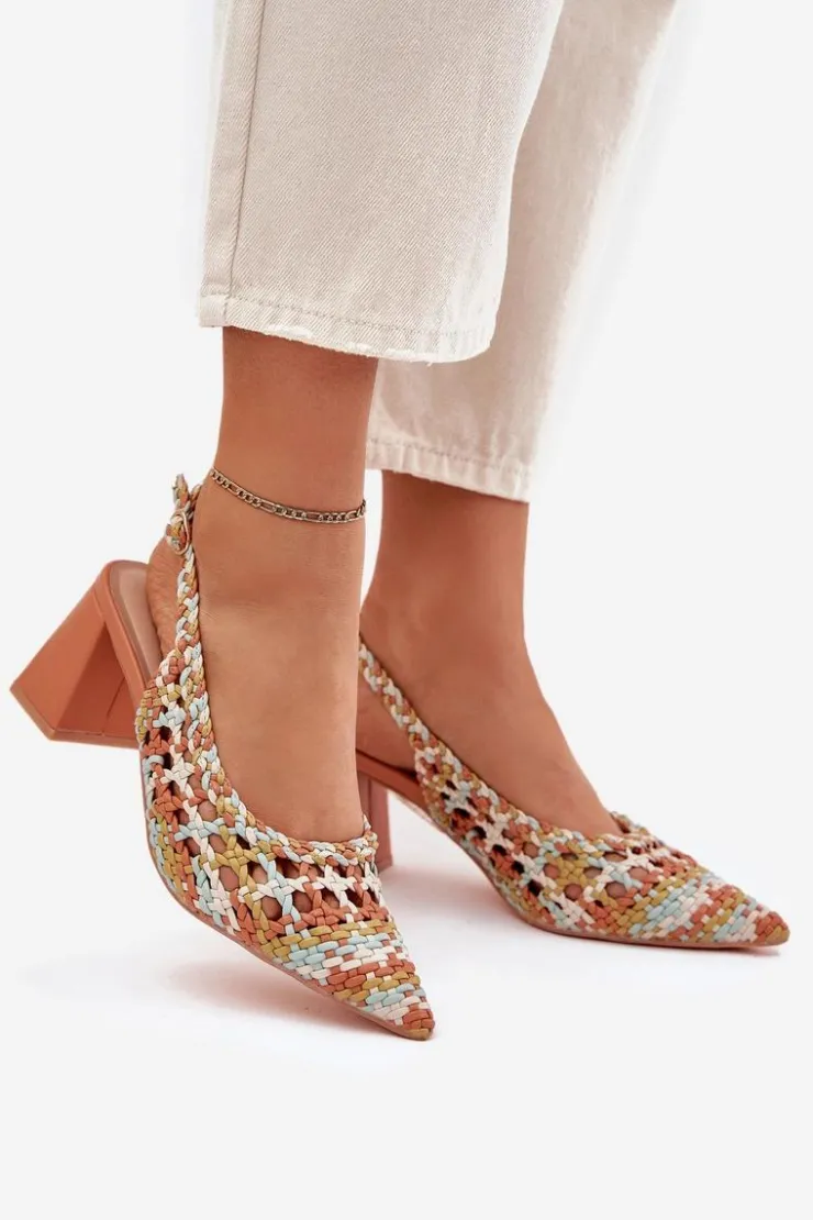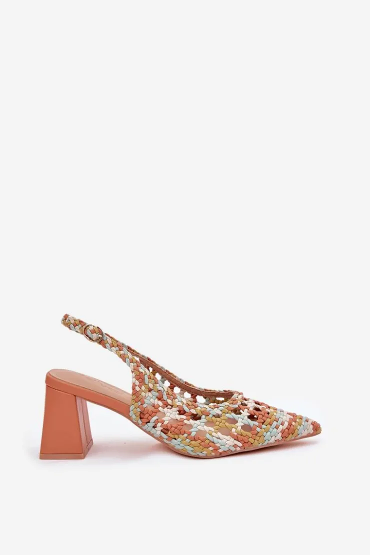 Sandały damskie z plecionki na obcasie słupku to stylowa propozycja na letnie dni. Szpiczaste noski nadają im smukłości, a zapinanie na sprzączkę z regulowanym paskiem zapewnia idealne dopasowanie do stopy. Miękka wkładka z eko skóry gwarantuje komfort przez cały dzień. Idealne na wieczorne wyjścia czy specjalne okazje, łączą stylowy design z wygodą. Przy wyborze rozmiaru prosimy sugerować się tabelą rozmiarów.