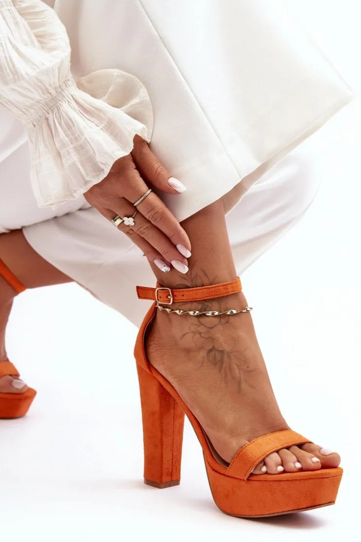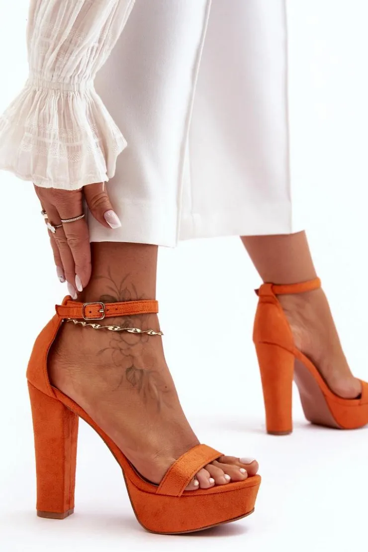 Klasyczne sandałki zostały wykonane z miłego w dotyku eko zamszu. Model ten posiada na przodzie cienki pasek podtrzymujący stopę przed przesuwaniem. Sandałki osadzono na obcasie w postaci wysokiego słupka. Dodatkowo sandałki posiadają delikatnie usztywniany zapiętek. Model ten jest zapinany na regulowany pasek ze sprzączką. Przy wyborze rozmiaru prosimy sugerować się tabelą rozmiarów.