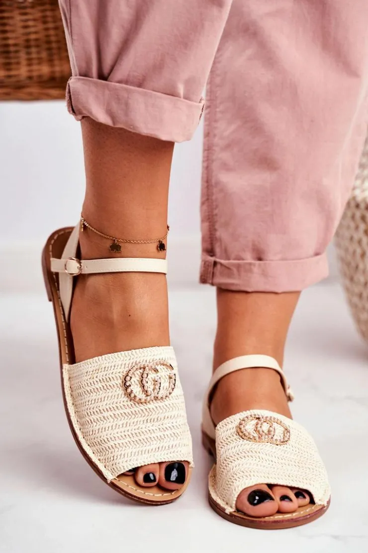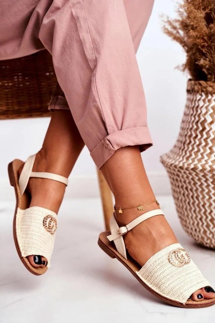 Boto Sandały Płaskie*Beżowe Damskie Płaskie Sandałki Lu Boo Plecione Felicia