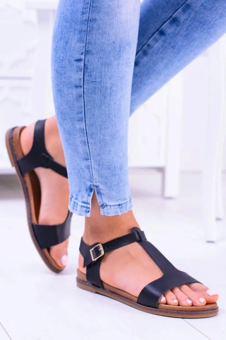 Boto Sandały Płaskie*Czarne Damskie Płaskie Sandałki Sunnyside
