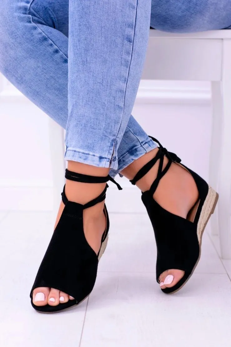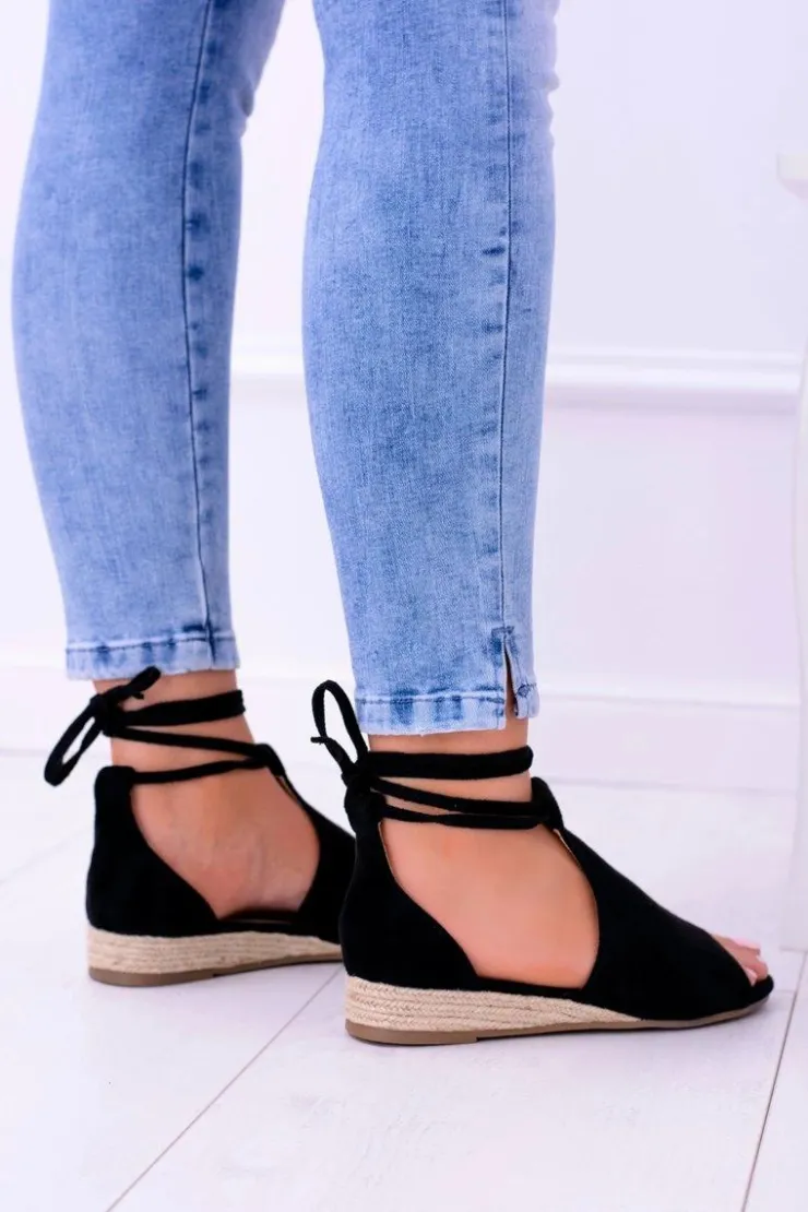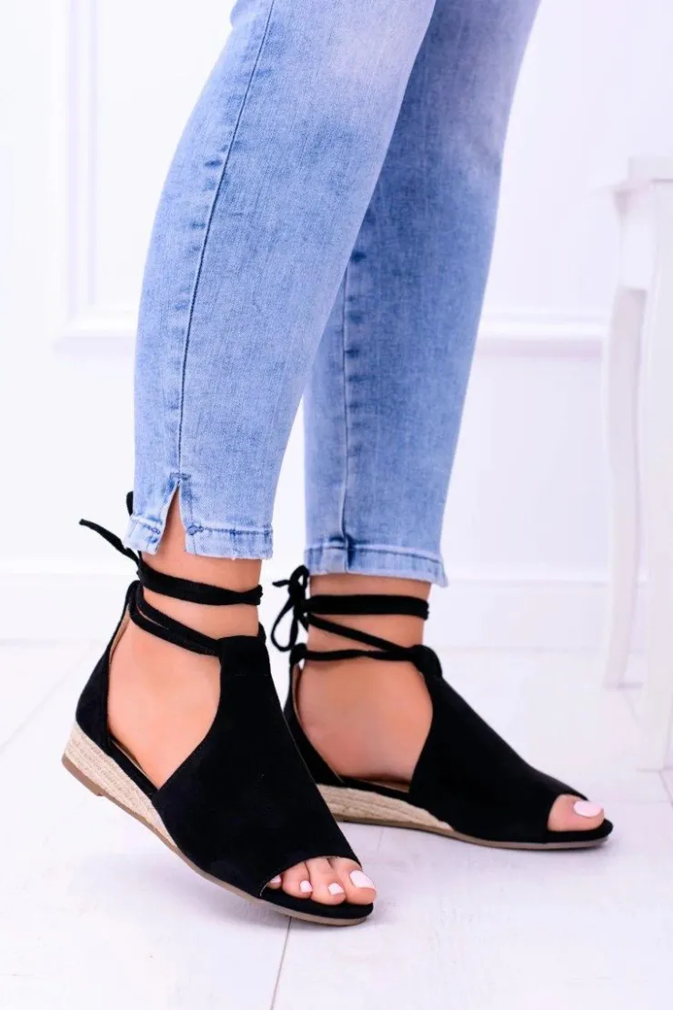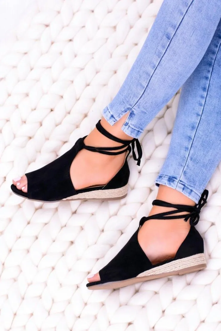 Boto Sandały Płaskie*Czarne Zamszowe Sandały na Lekkim koturnie Espanoso