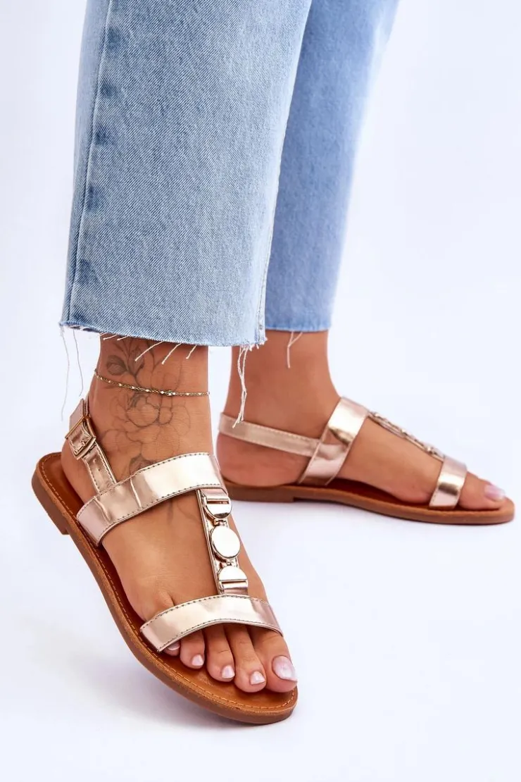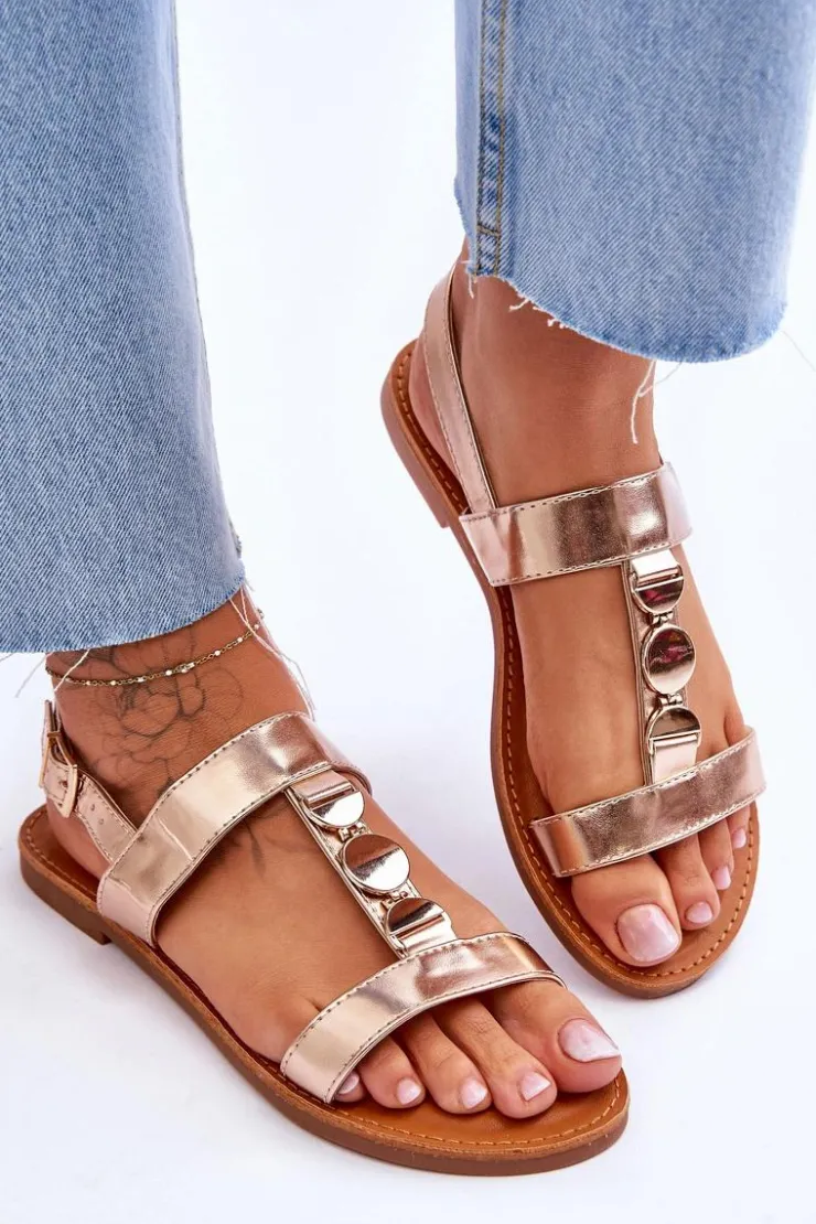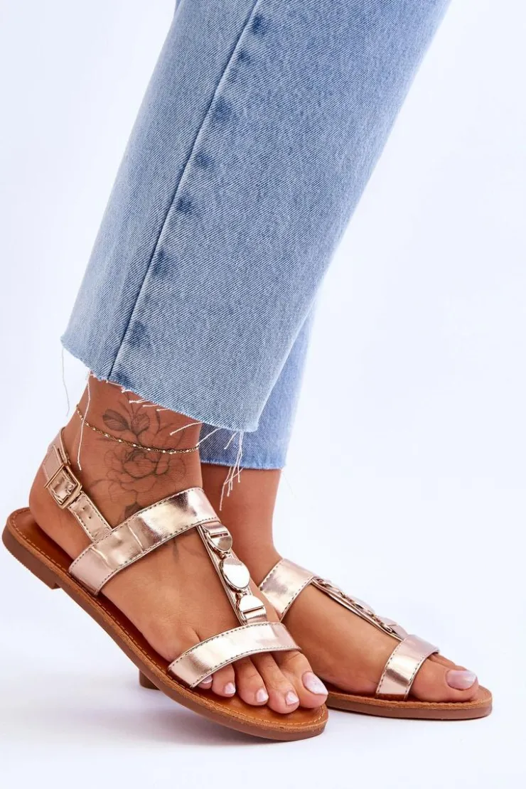 Damskie sandałki zostały wykonane z eko skóry. Model ten posiada zdobienie na paseczku w postaci kół. Sandałki są zapinane na regulowany pasek ze sprzączką. Wygodna wkładka z eko skóry zapewni komfort podczas użytkowania obuwia. Sandałki osadzono na płaskim obcasie z antypoślizgową podeszwą. Przy wyborze rozmiaru prosimy kierować się tabelą rozmiarów.
