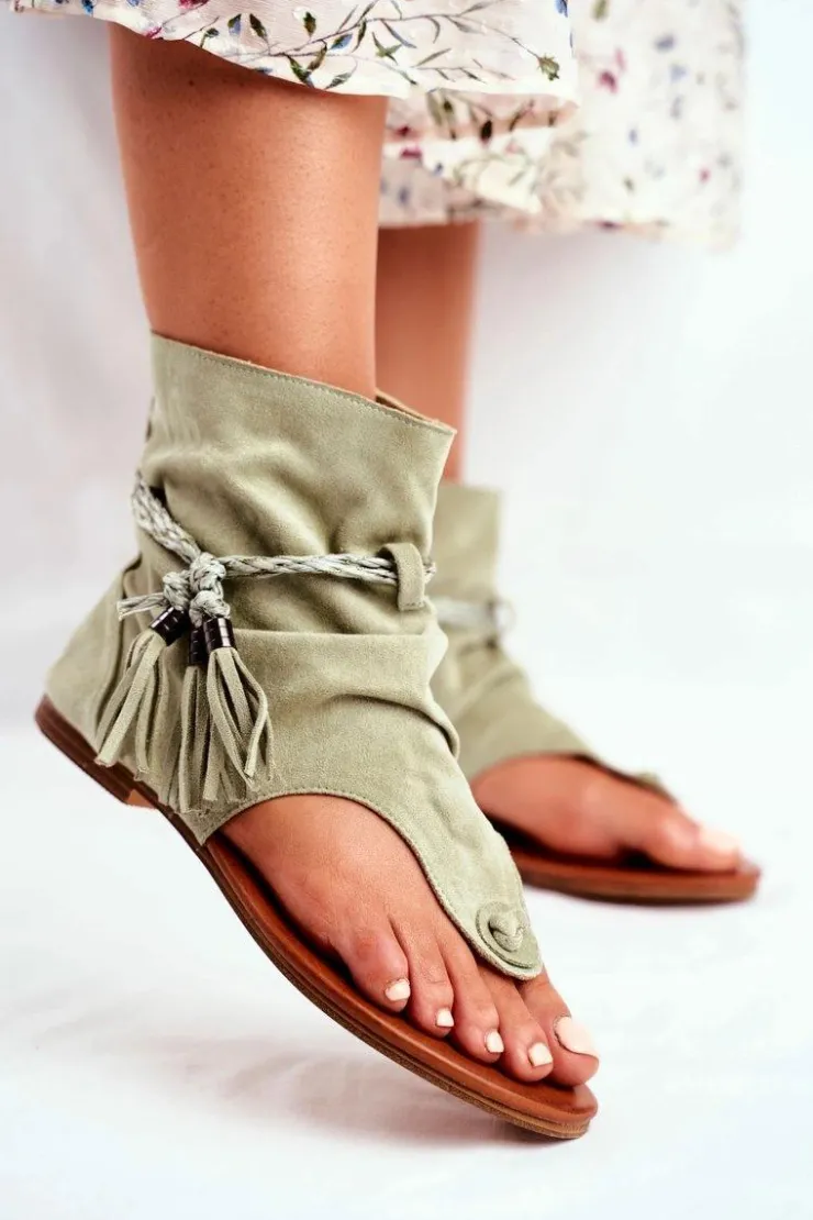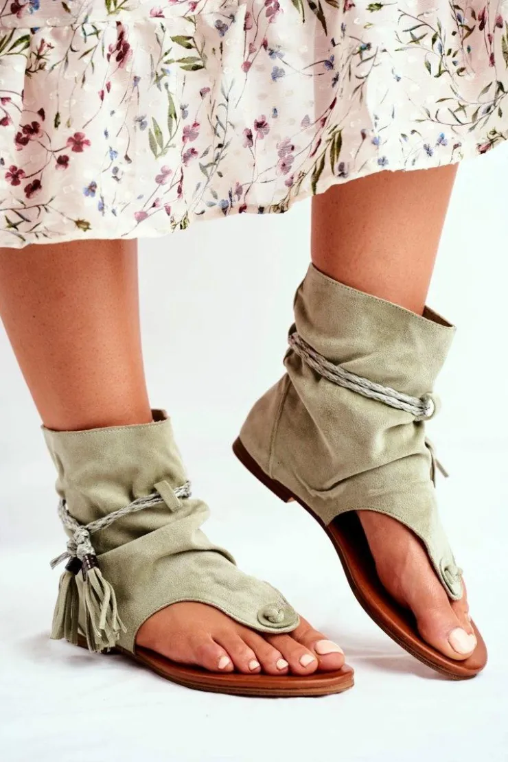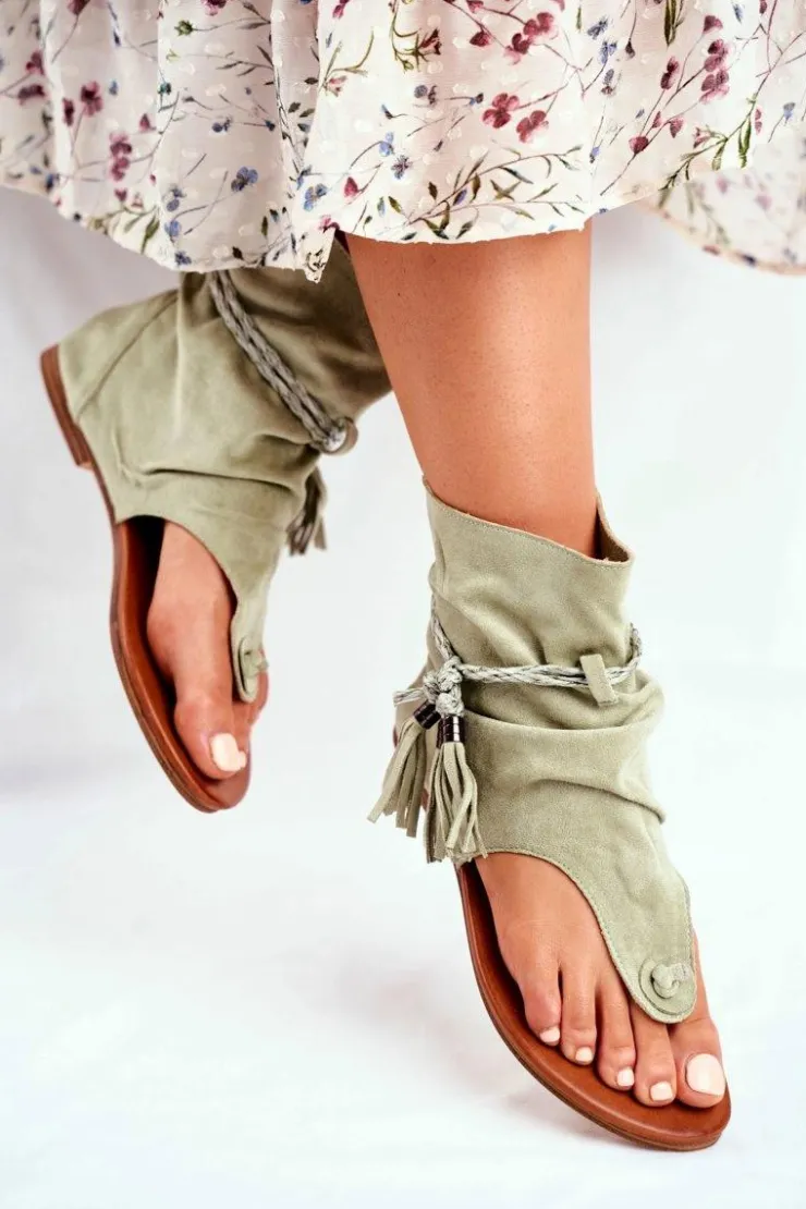 Boto Sandały Płaskie*Damskie Sandałki Japonki Z Cholewką Zielone SL1011 Madrit