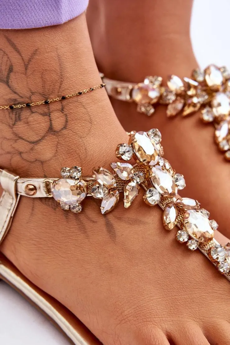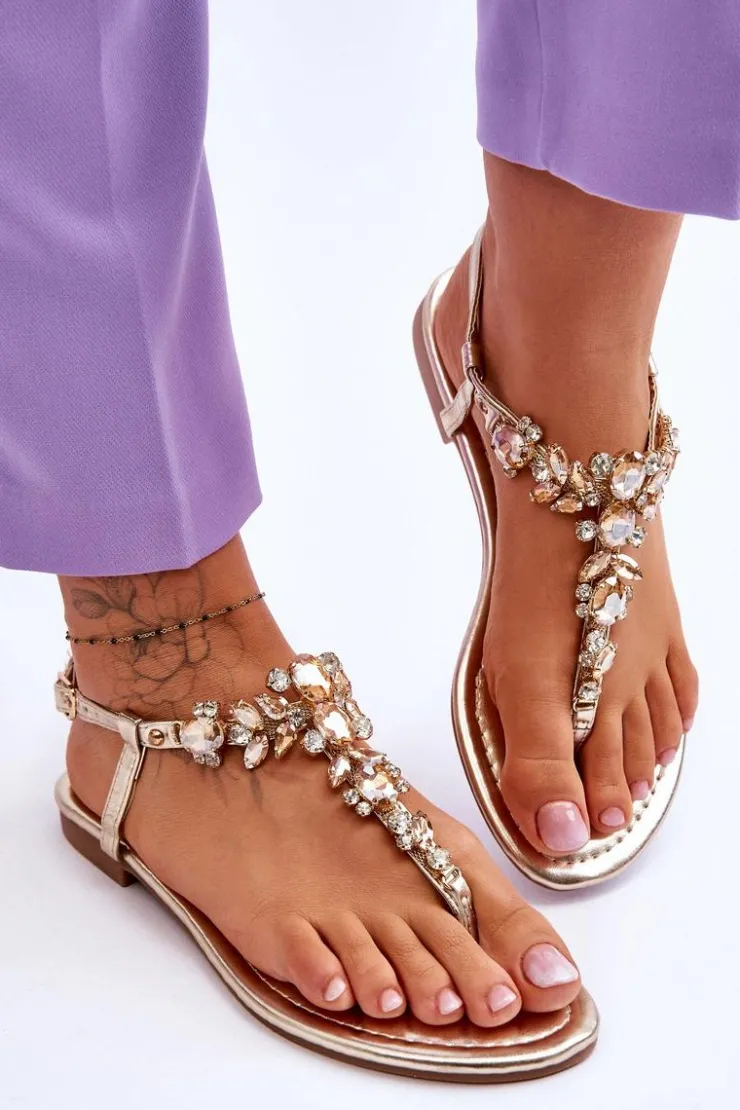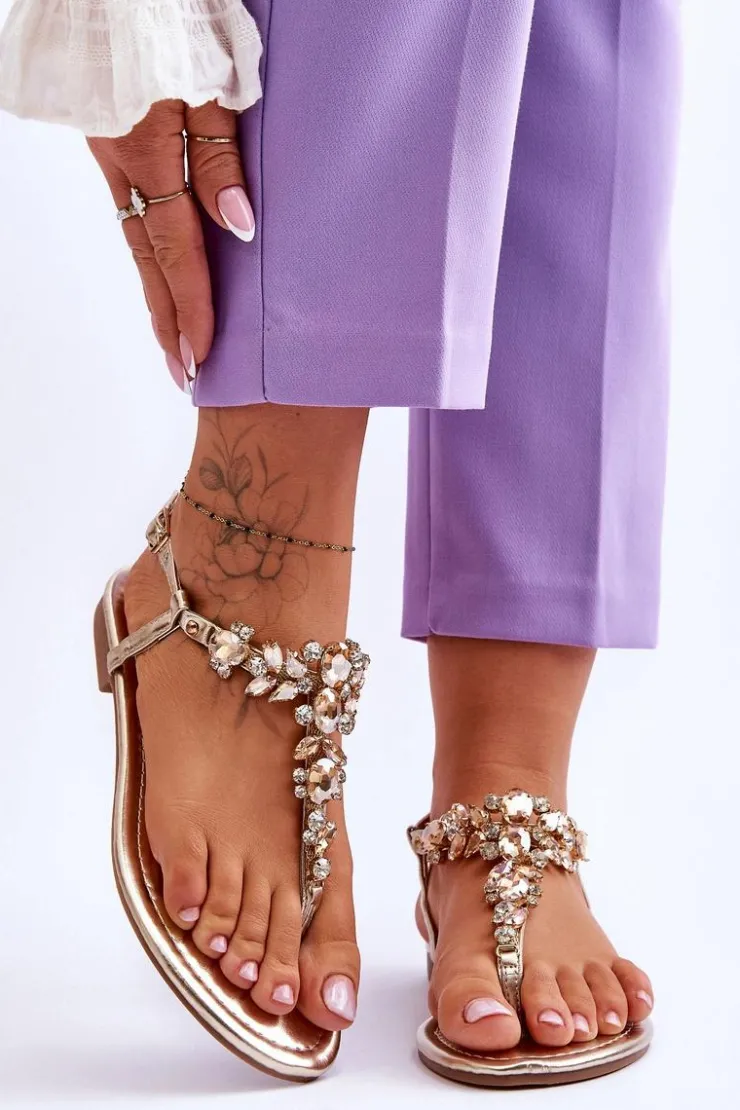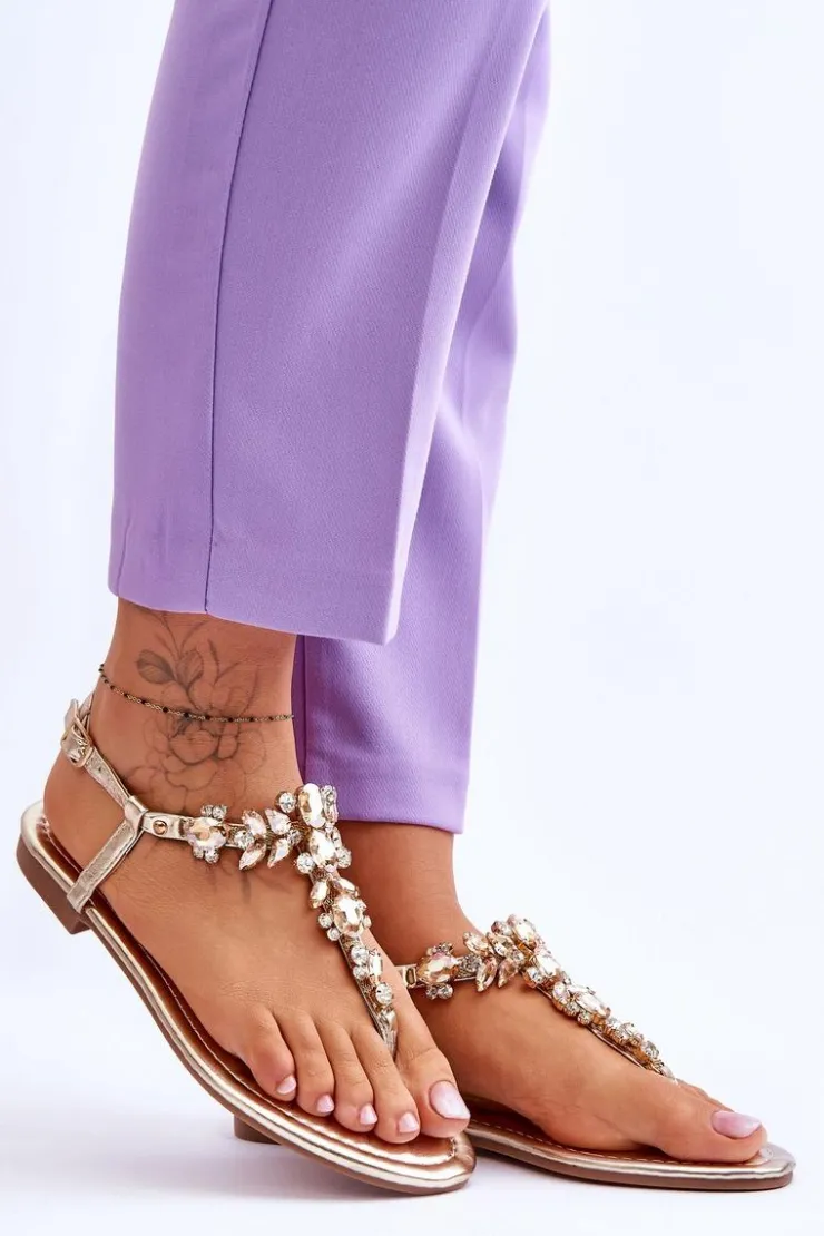Damskie sandały o fasonie japonek to idealny wybór na cieplejsze dni! Zostały wykonane z eko skóry. Posiadają zdobienia na całości w postaci kamieni i dżetów. Zapinane wokół kostki na regulowany pasek ze sprzączką. Osadzone na płaskim obcasie. Wygodna w użytkowaniu wkładka została wykonana z eko skóry. Przy wyborze rozmiaru prosimy kierować się tabelą rozmiarów.