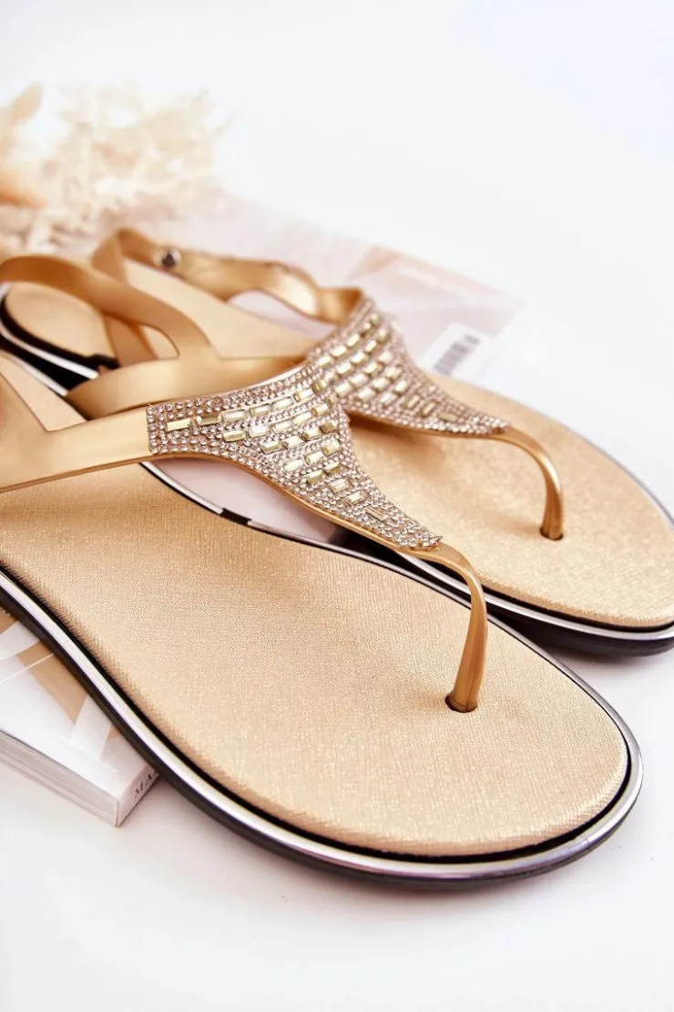 Damskie sandały są idealnym obuwiem na upalne dni! Model w stylu japonek. Buty te zostały wykonane w całości z gumowego tworzywa. Na paseczkach znajdują się piękne dżety imitujące cyrkonie. Zapinane na sprzączkę z regulowanym paskiem. Sandały te są osadzone na płaskim obcasie z antypoślizgową podeszwą. Ten niezwykły model powinien znaleźć się właśnie w Twojej szafie! Przy wyborze rozmiaru prosimy kierować się tabelą rozmiarów.