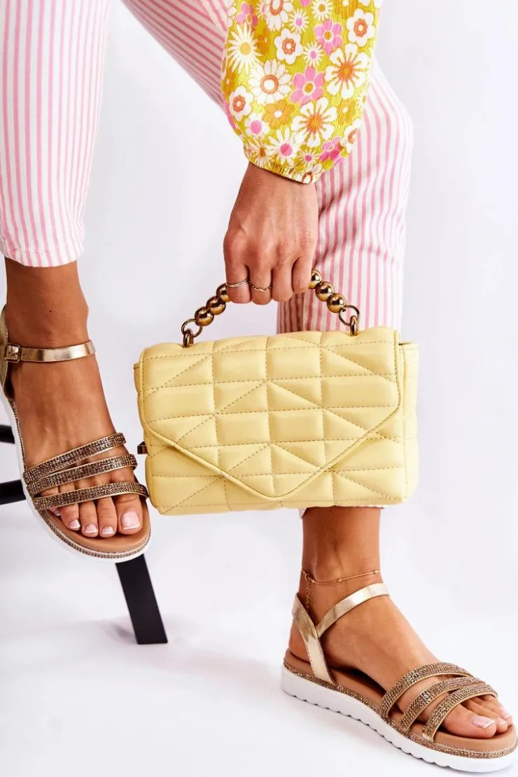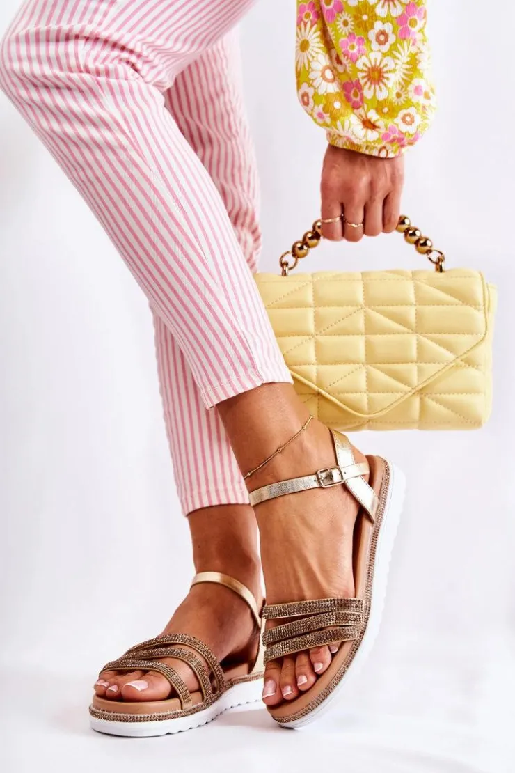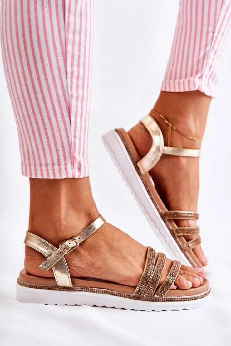 Boto Sandały Płaskie*Damskie Sandały Z Cyrkoniami Złote Sorrita