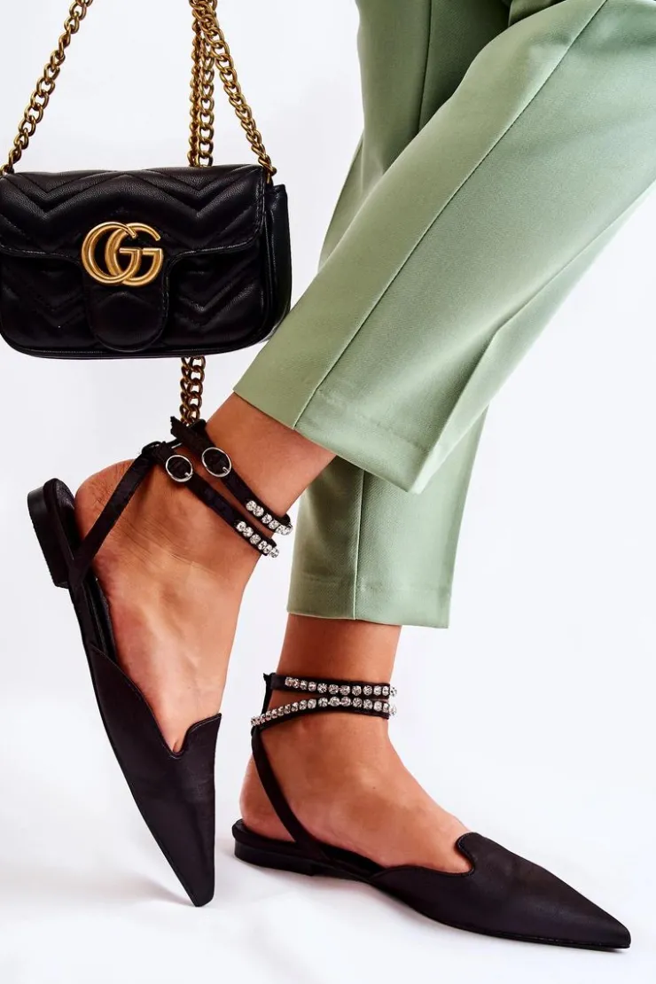Boto Sandały Płaskie*Damskie Sandały Z Noskiem W Szpic Czarne Amisha