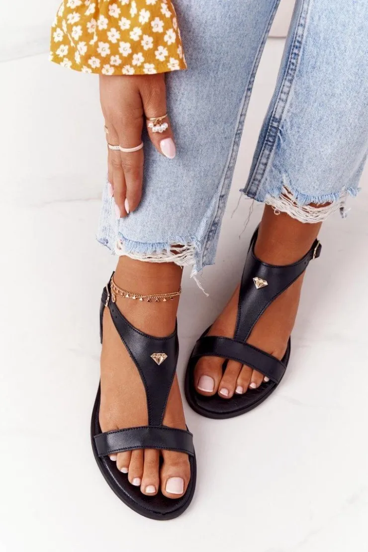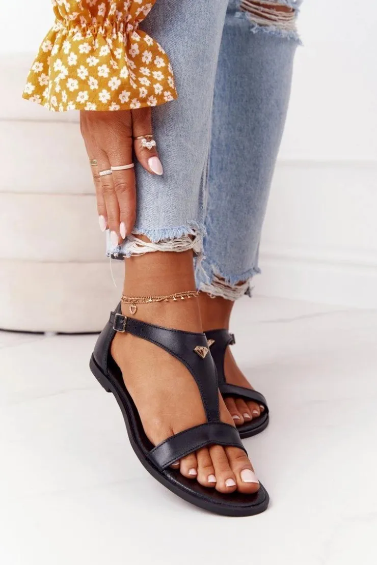 Boto Sandały Płaskie*Damskie Skórzane Sandały Nicole 2648 Czarne