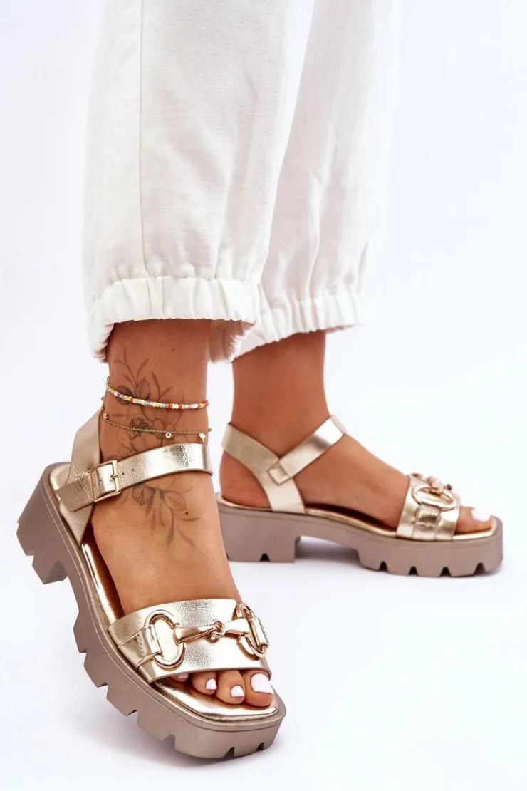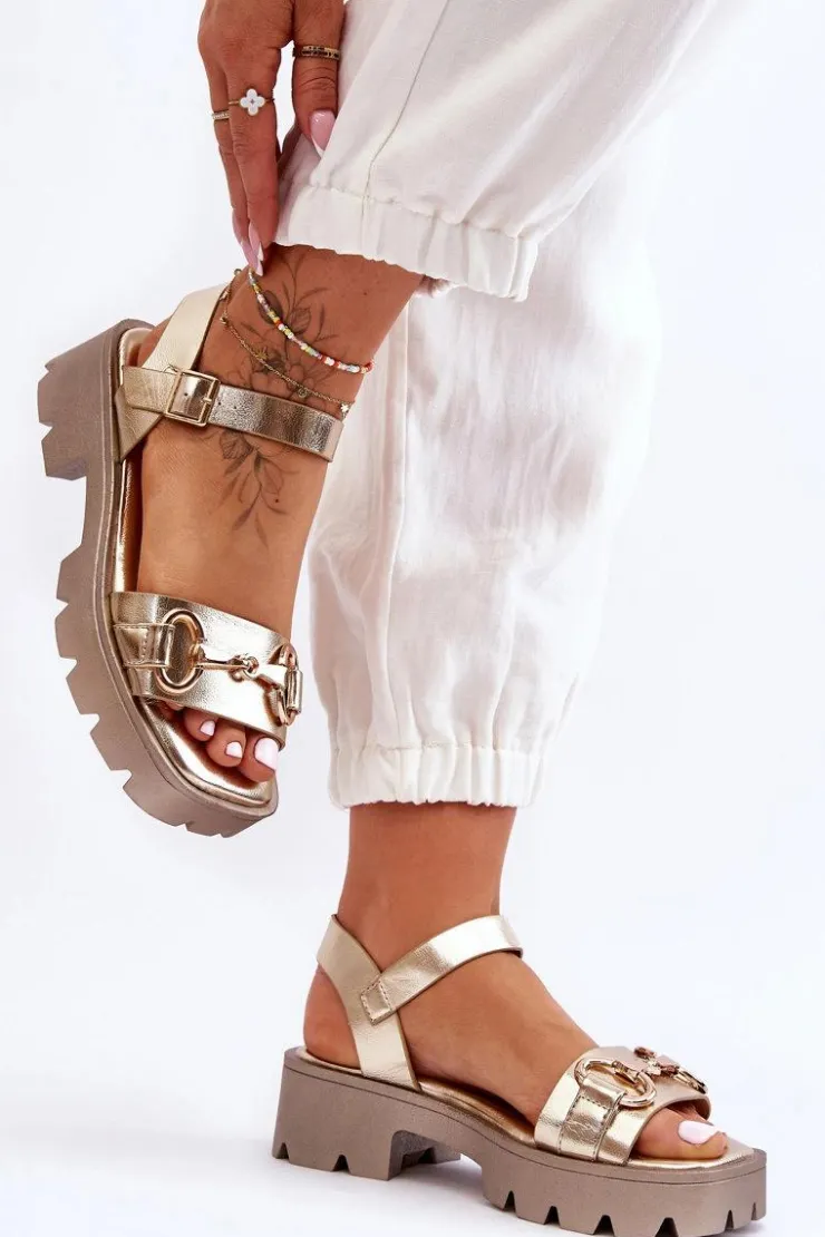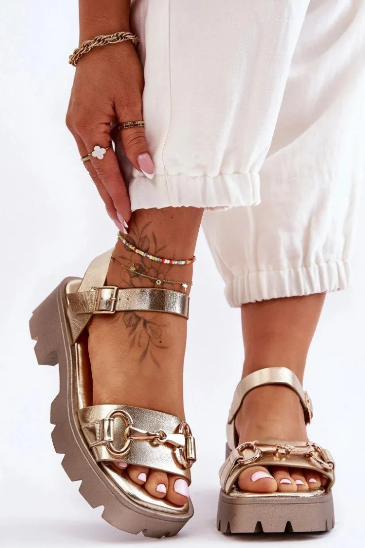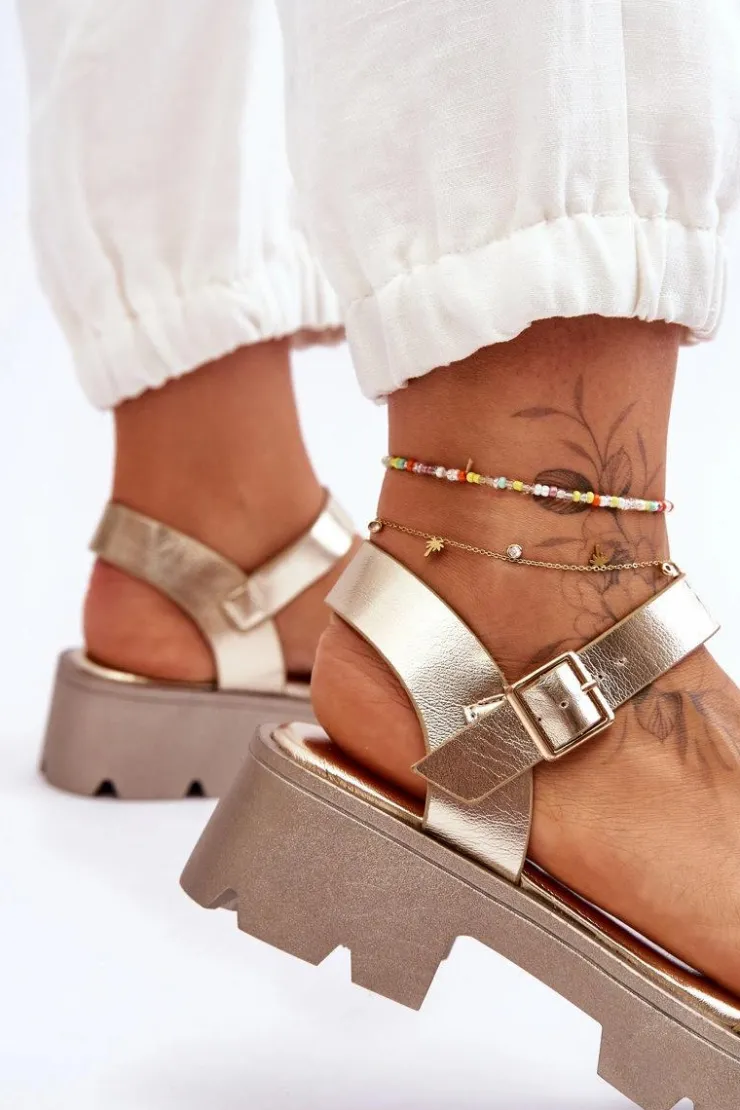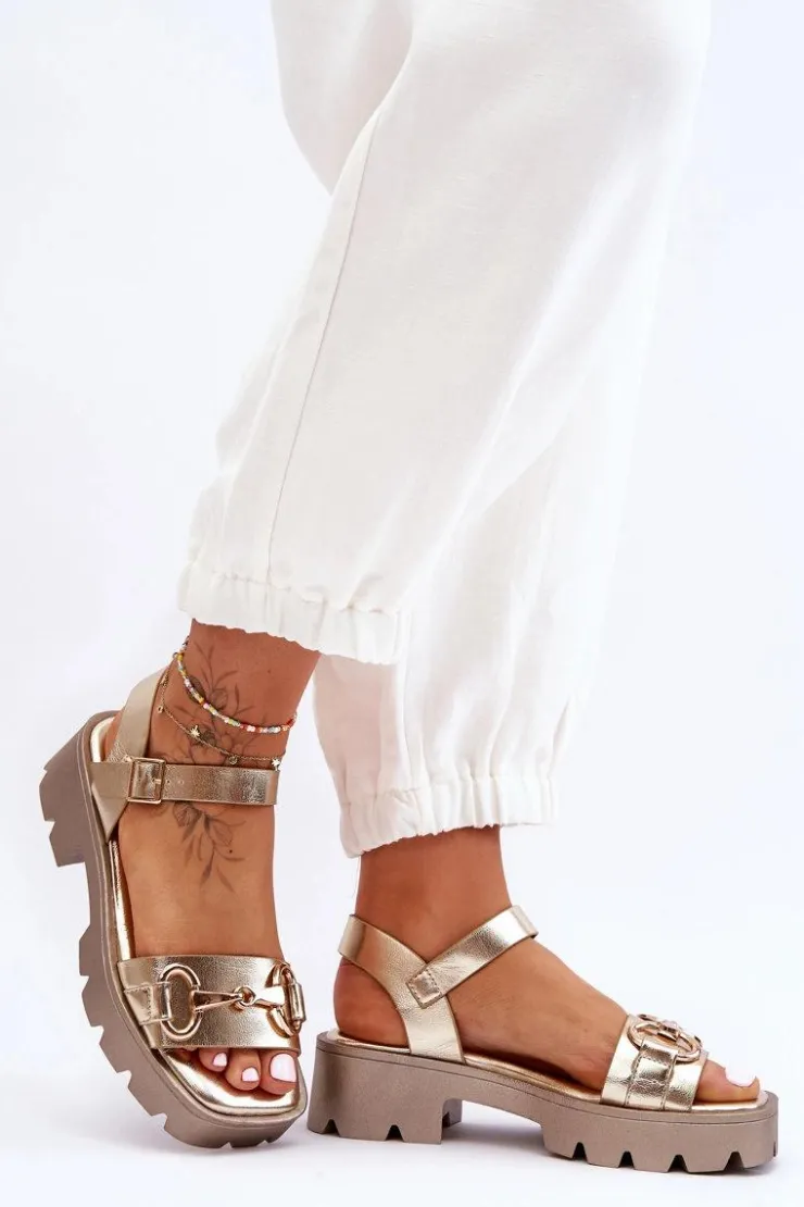 Wygodne sandały damskie zostały osadzone na płaskim obcasie oraz platformie. Wykonane z eko skóry z szerokim paskiem przytrzymującym stopę przed przesuwaniem się z ozdobą. Miękka wkładka pozwoli na komfortowe użytkowanie obuwia nawet przez cały dzień! Model ten jest zapinany wokół kostki na regulowany pasek ze sprzączką. Podeszwa wykonana z tworzywa sztucznego. Idealny model na letnie, upalne dni. Przy wyborze rozmiaru prosimy sugerować się tabelą rozmiarów.