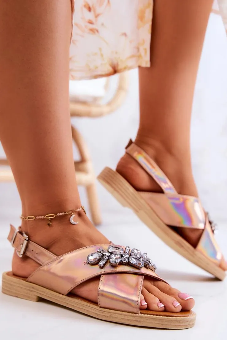 Sandały ozdobione kryształkami na pasku przypadną do gustu niejednej miłośniczce błyskotek! Wykonane są z eko skóry. Posiadają płaski obcas oraz antypoślizgową podeszwę. Wkładka jest miękka, wykonana z eko skóry, przez co sandały są bardzo komfortowe w użytkowaniu. Zapinane na sprzączkę z regulowanym paskiem, który podtrzymuje stopę. Świetny model na upalne dni! Nie czekaj dłużej i kup już dziś! Przy wyborze rozmiaru prosimy sugerować się tabelą rozmiarów.