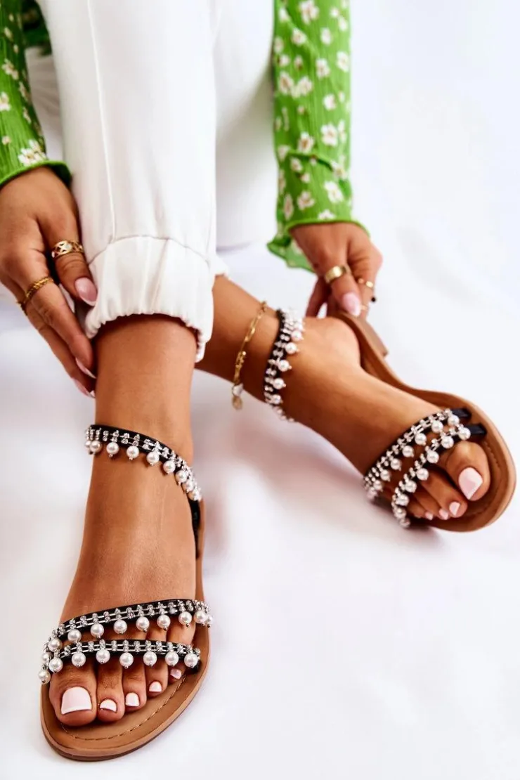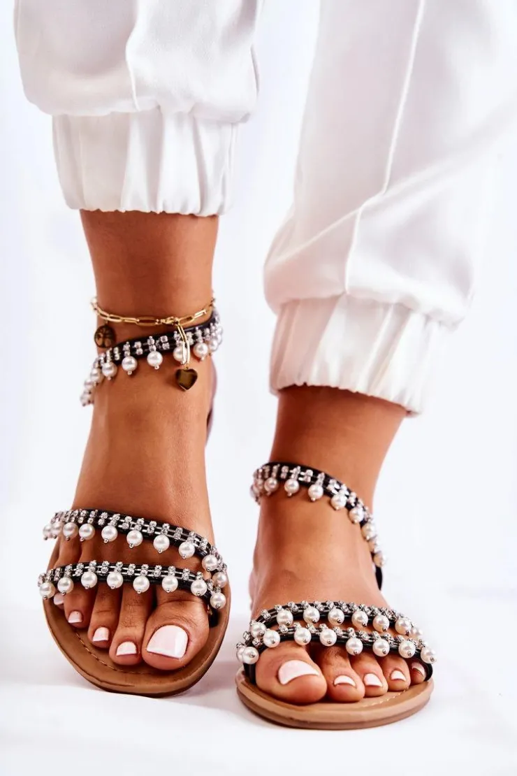 Boto Sandały Płaskie*Damskie Wygodne Sandały Z Ozdobami Czarne Nell