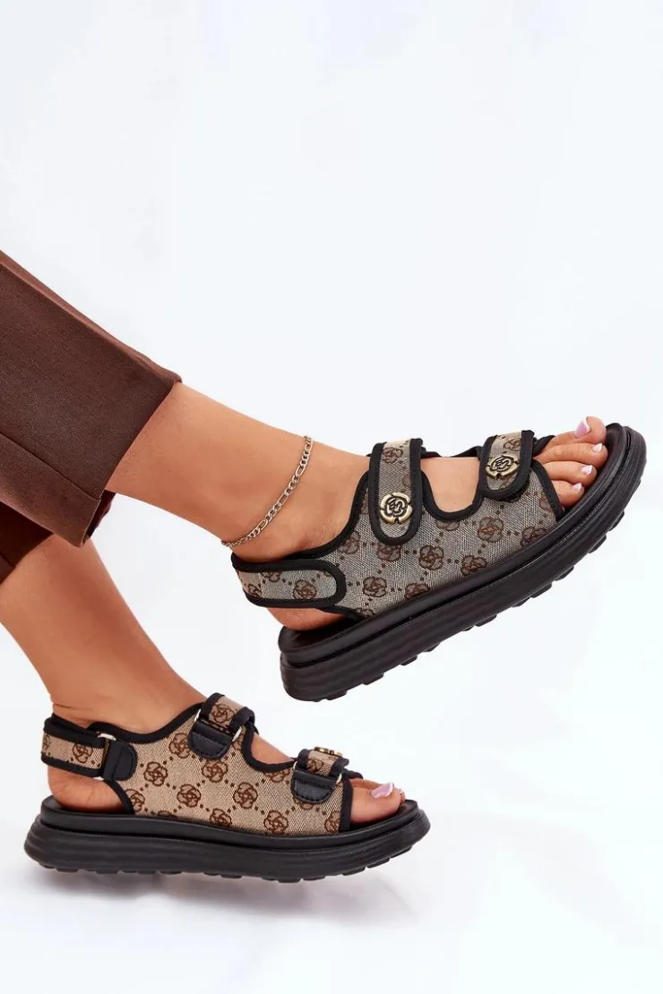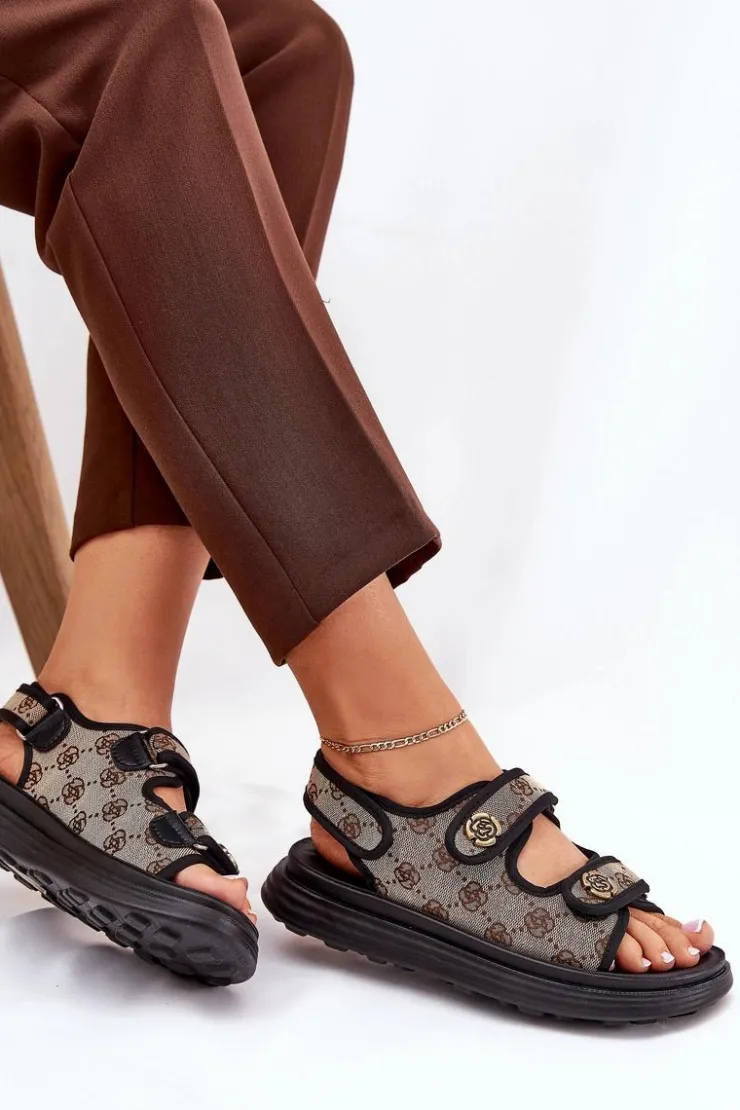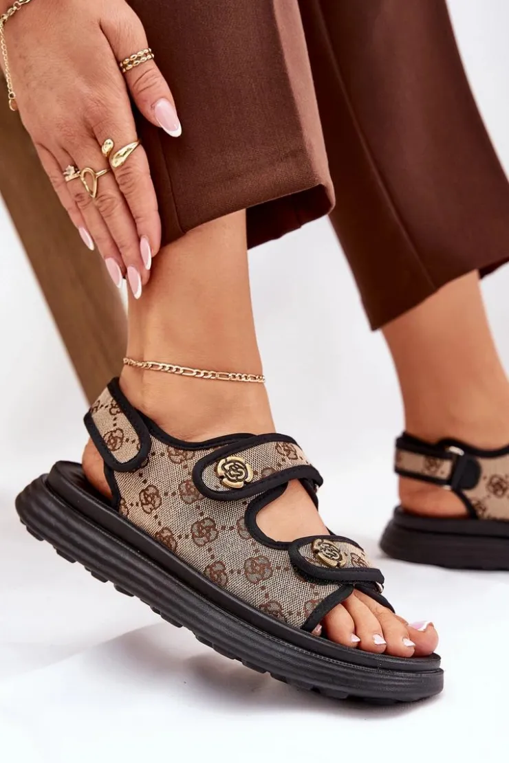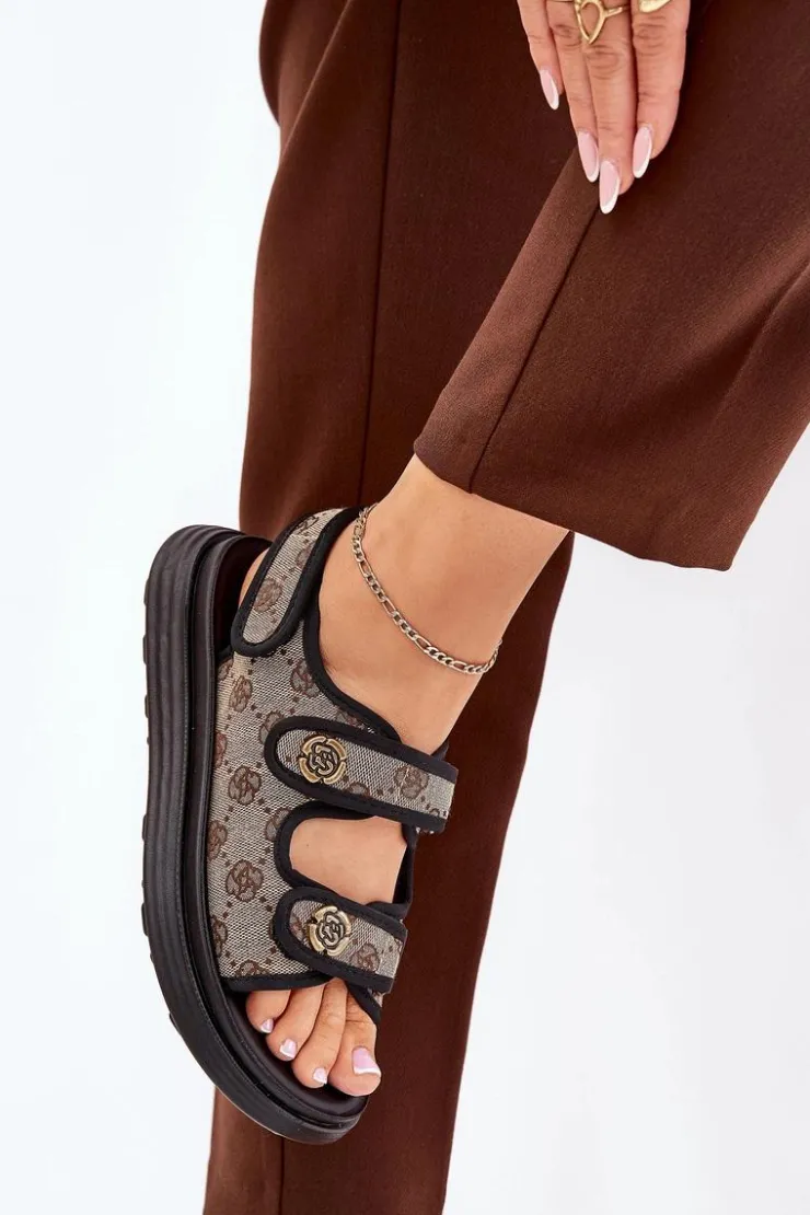 Stylowe sandały damskie z materiału tekstylnego, wyróżniające się wzorzystą cholewką, która nadaje im unikalnego charakteru. Zapinane na trzy rzepy, umożliwiają doskonałe dopasowanie do stopy. Ozdobne detale dodają elegancji i modowego akcentu. Osadzone na platformie, zapewniają komfort i stabilność przez cały dzień. Dzięki miękkiej wkładce sandały gwarantują wygodę, czyniąc je idealnym wyborem na ciepłe dni i letnie stylizacje. Przy wyborze rozmiaru prosimy sugerować się tabelą rozmiarów.