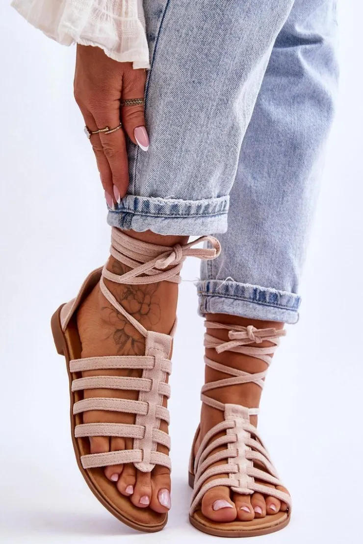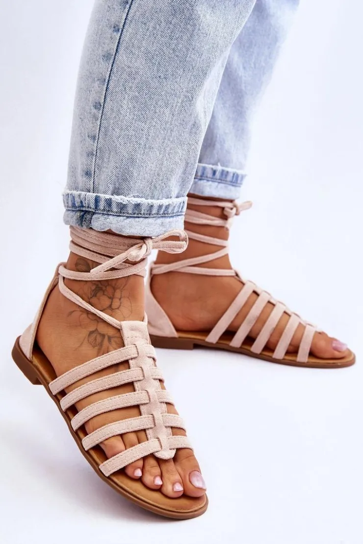 Boto Sandały Płaskie*Damskie Zamszowe Sandały Rzymianki Beżowe Sempre