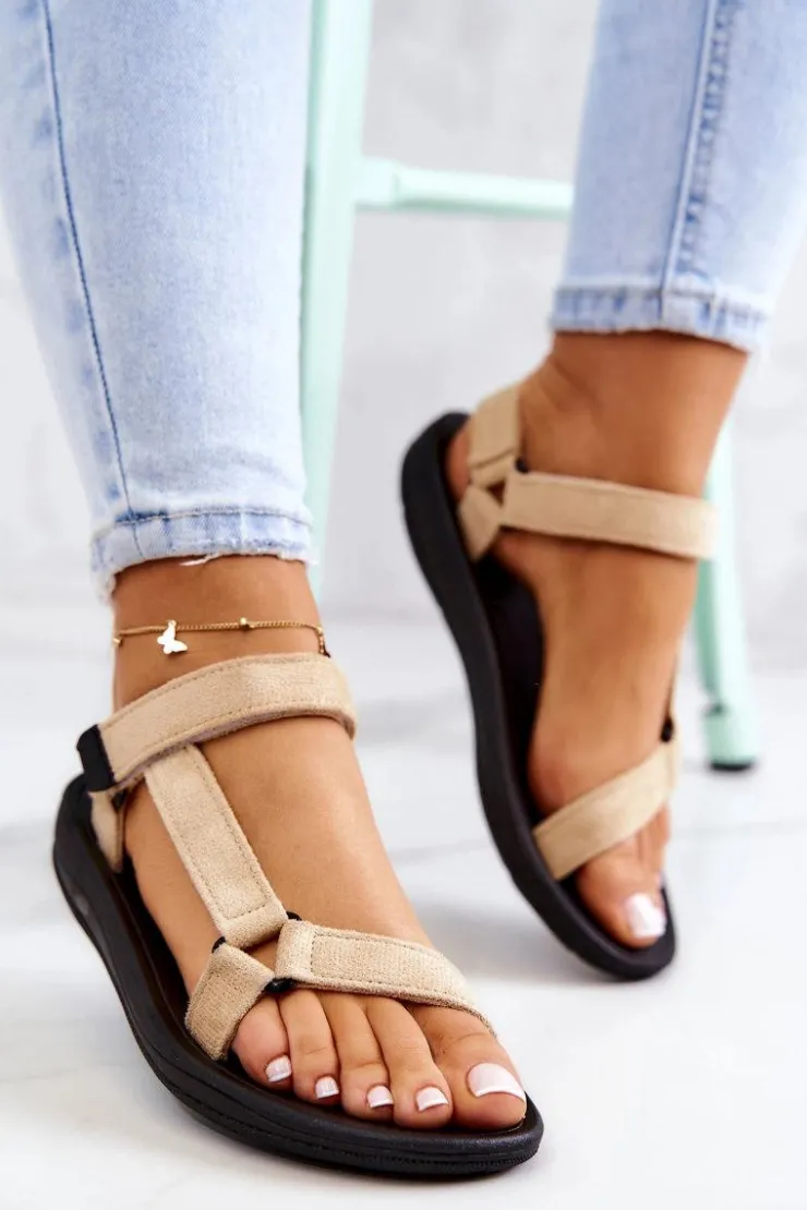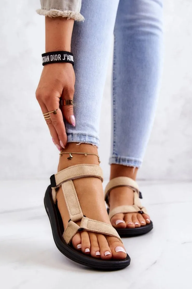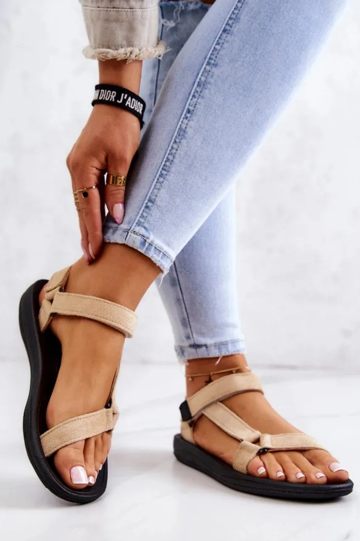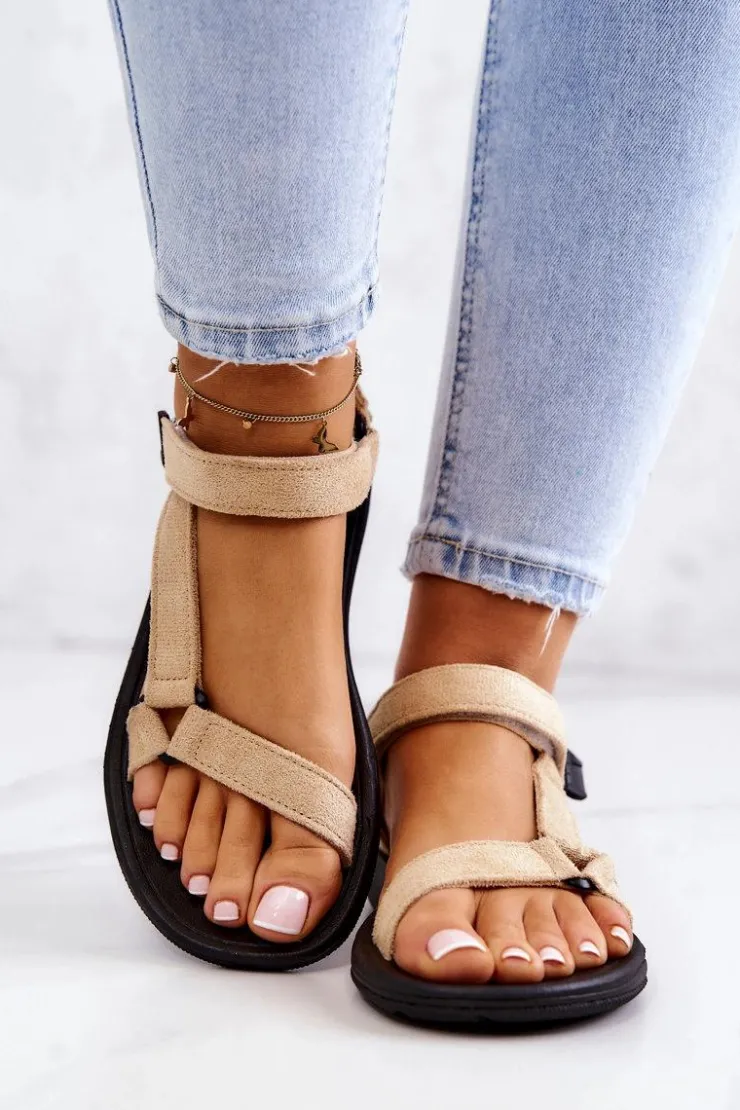 Boto Sandały Płaskie*Damskie Zamszowe Sportowe Sandały Beżowe Harris