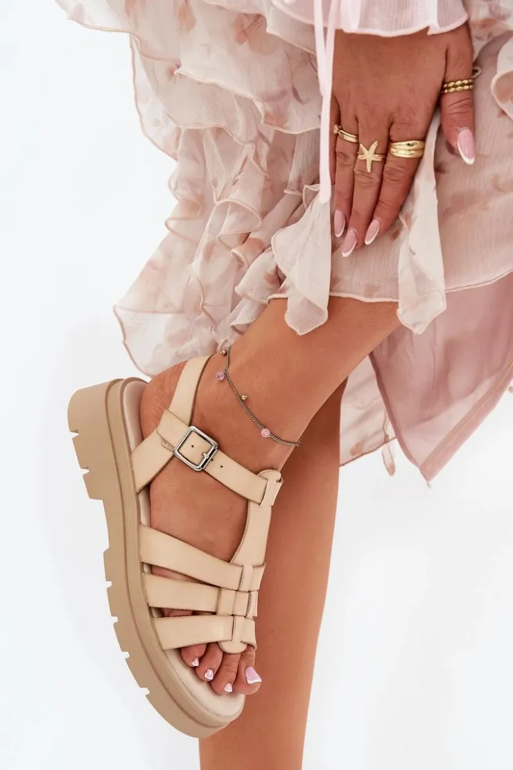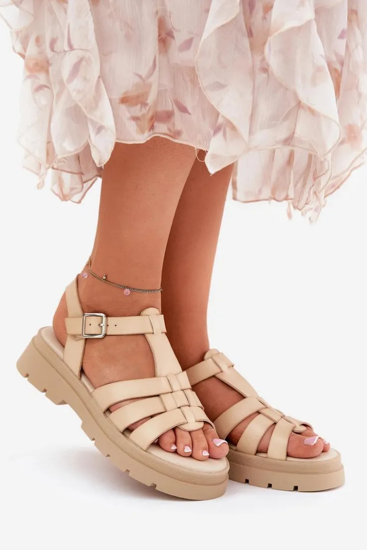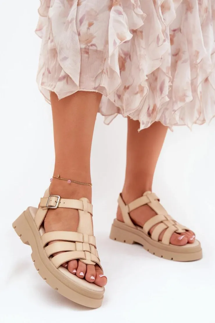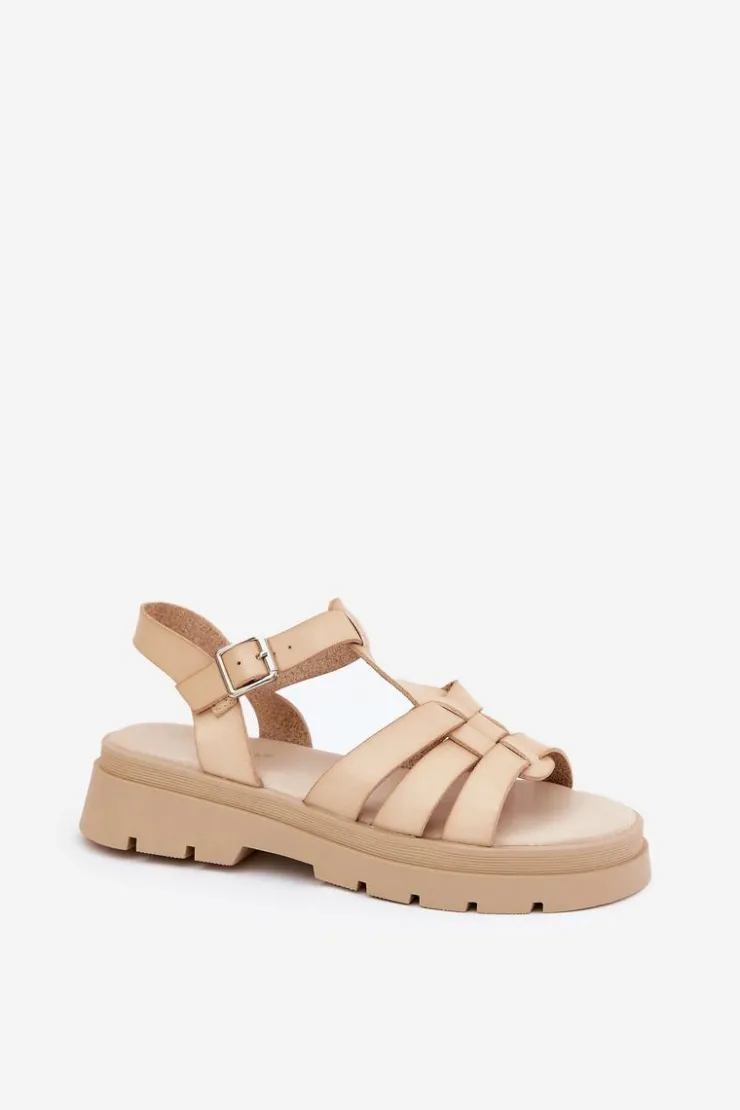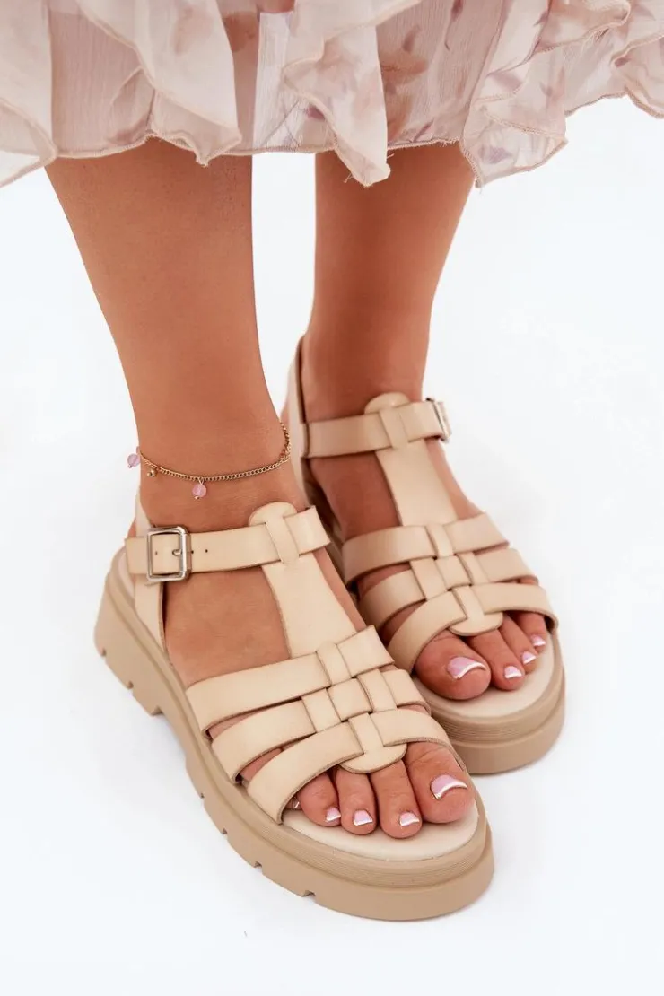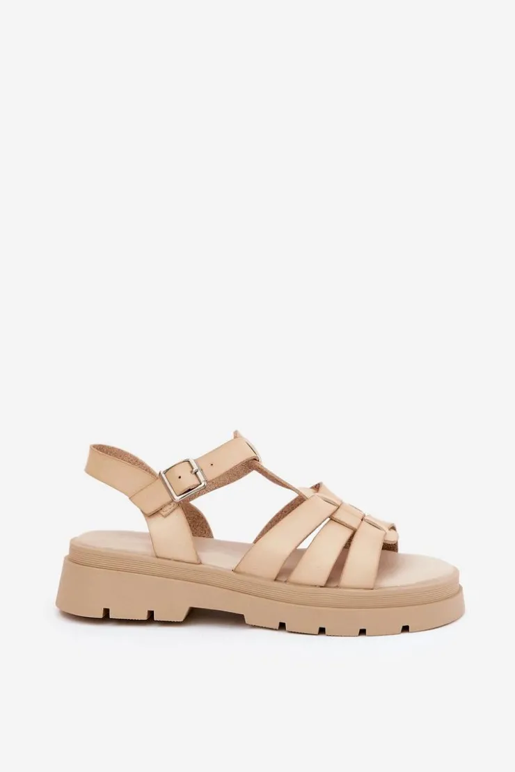Boto Sandały Płaskie*Eko Skórzane Sandały Damskie Na Platformie Beżowe Nendales Beżowy