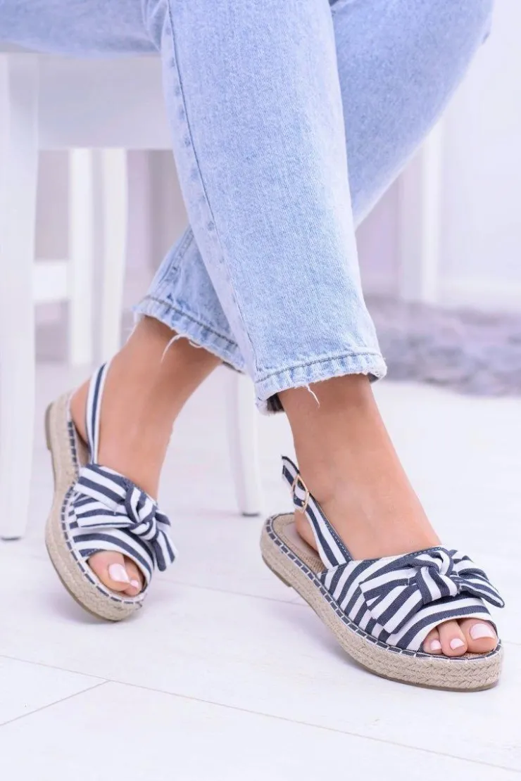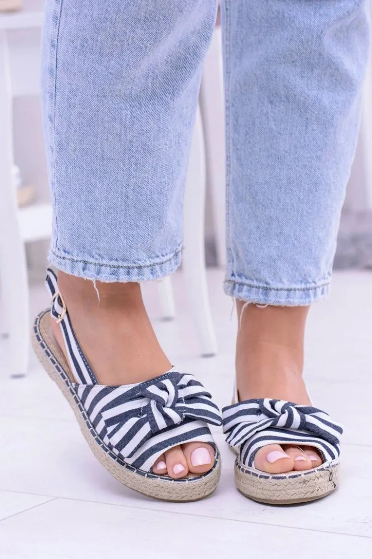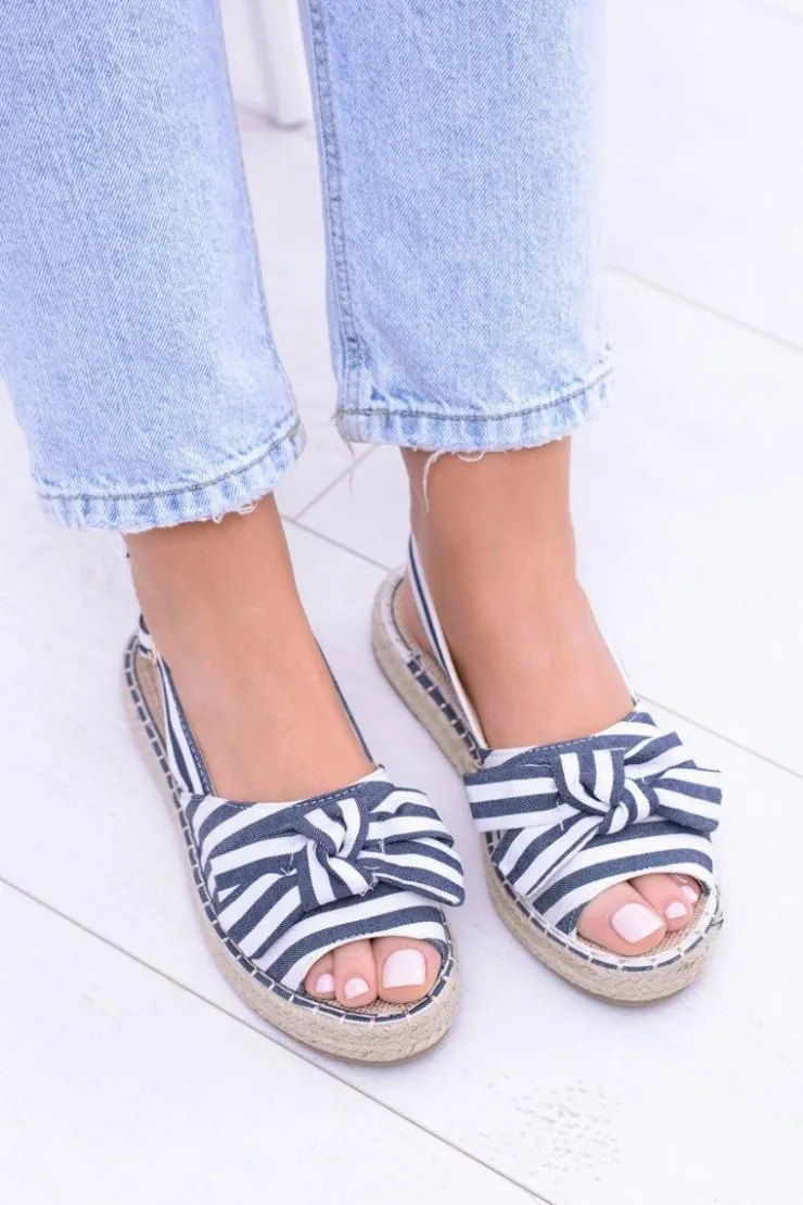 Boto Sandały Płaskie*Granatowe Damskie Sandały Espadryle Kokardy Buni