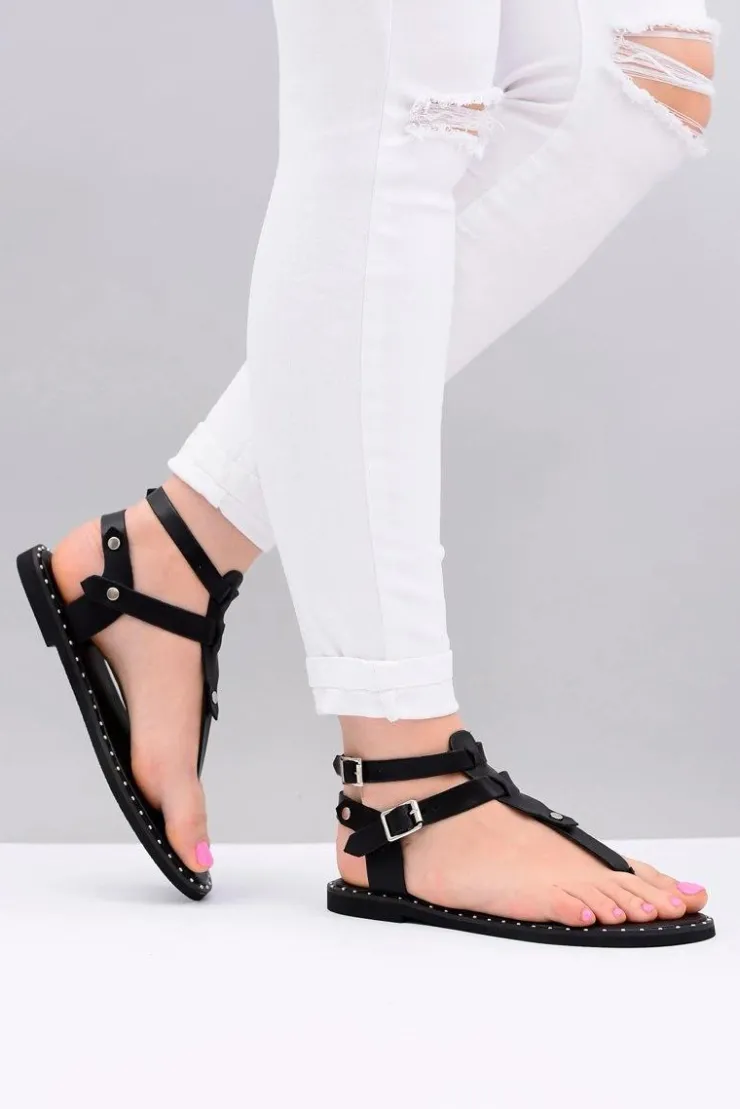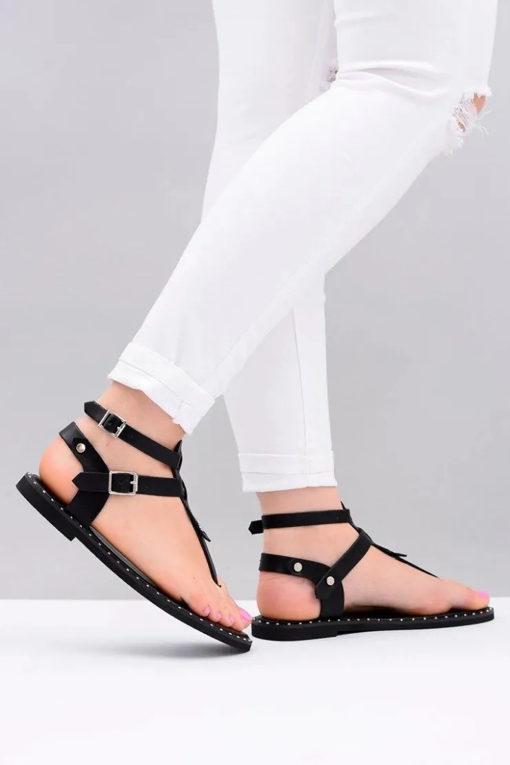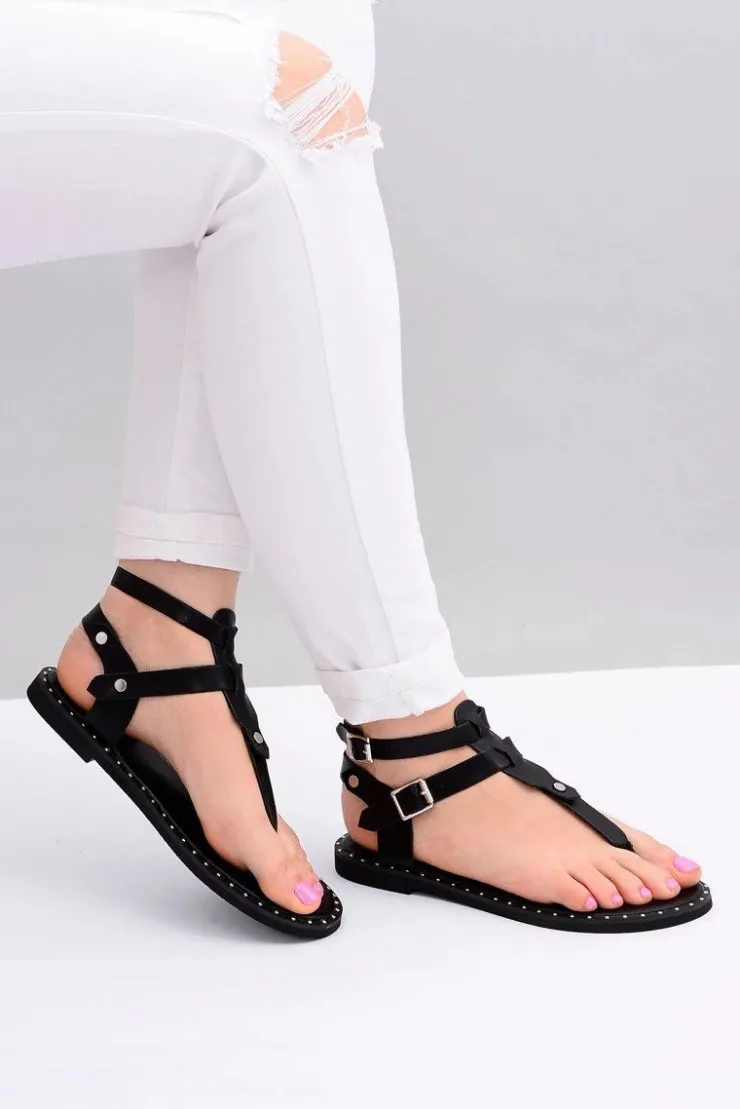 Boto Sandały Płaskie*Lu Boo | Damskie Sandałki Czarne Japonki Gladiatorki Achilla