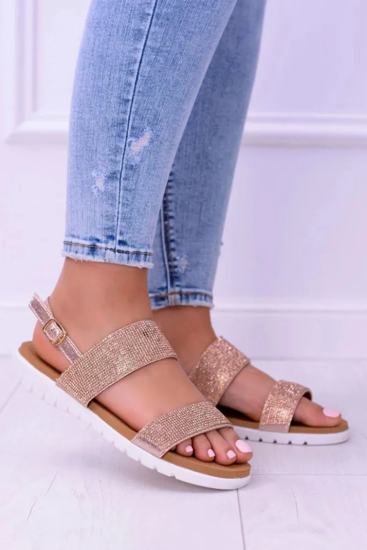 Boto Sandały Płaskie*Lu Boo Damskie Szampańskie Sandały Z Cyrkoniami Perfect