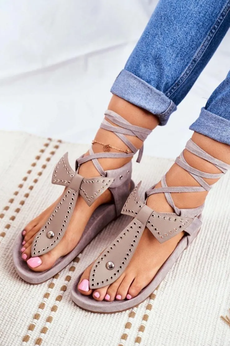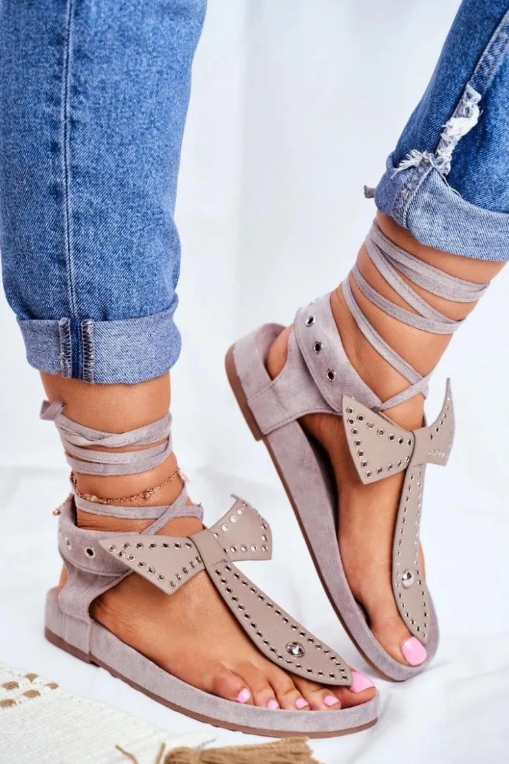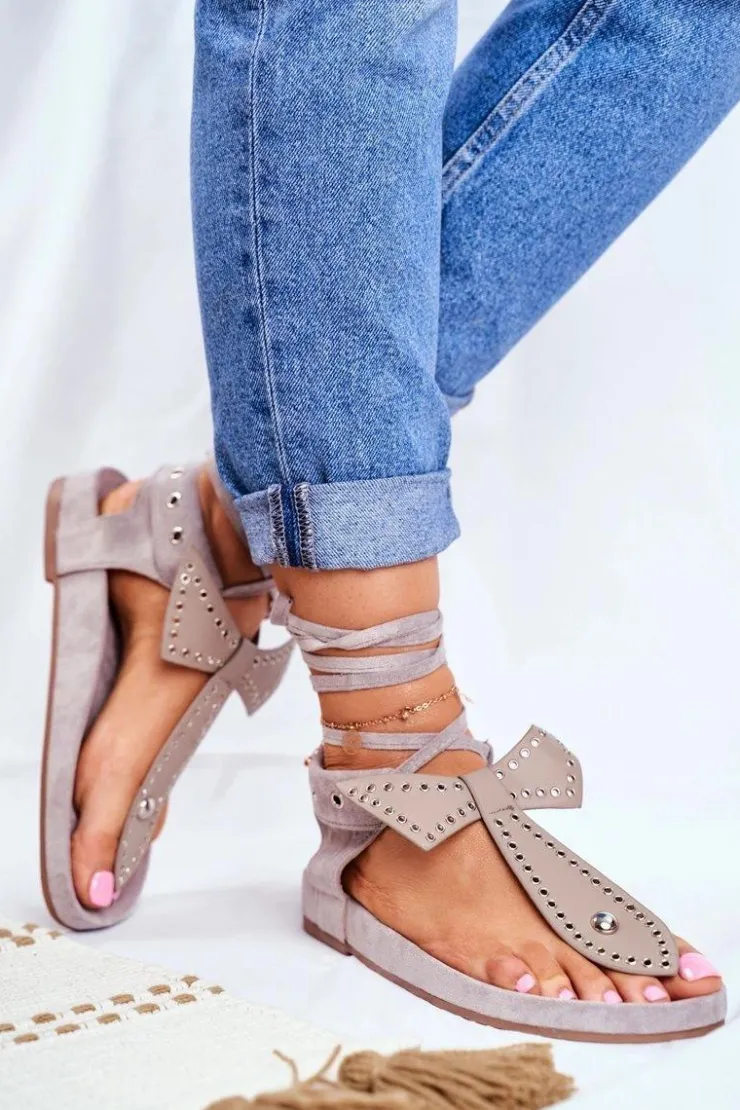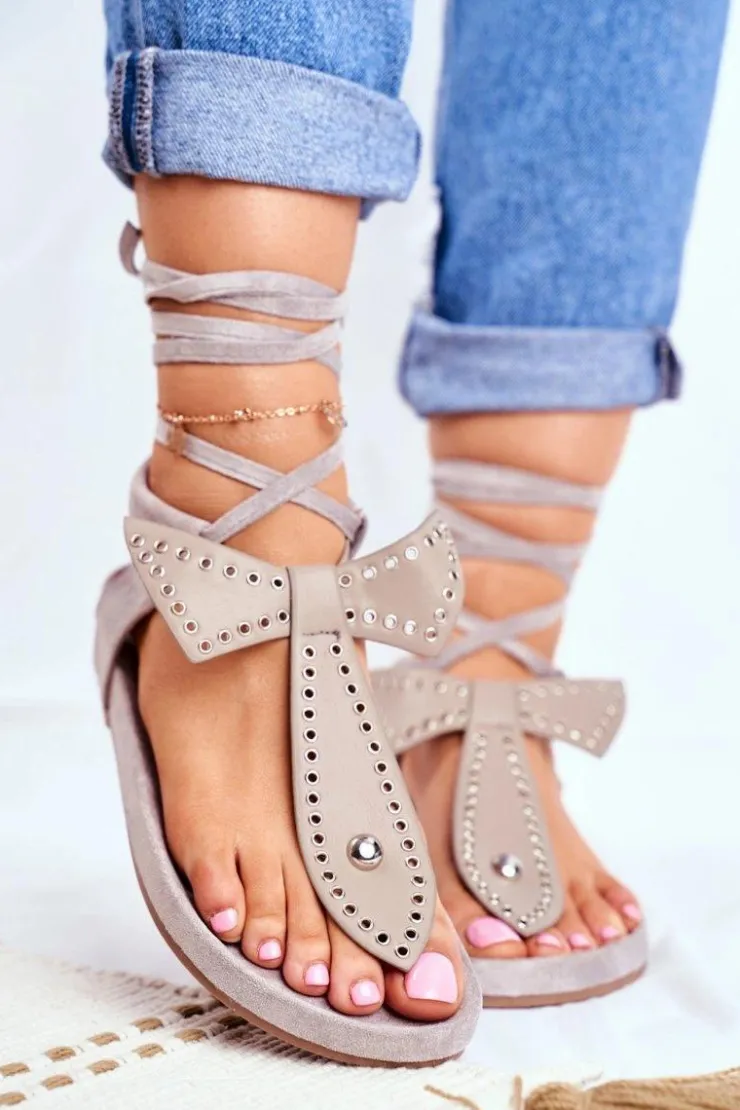 Boto Sandały Płaskie*Lu Boo Damskie Szare Wiązane Sandały Japonki Mara