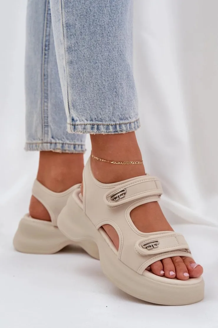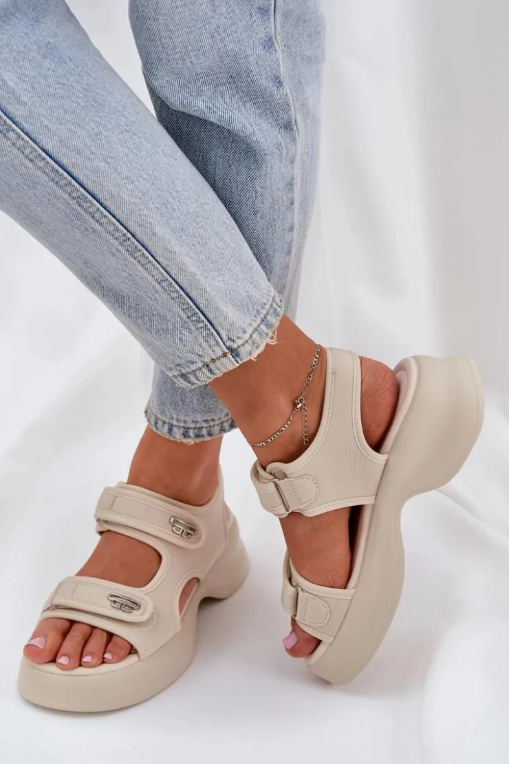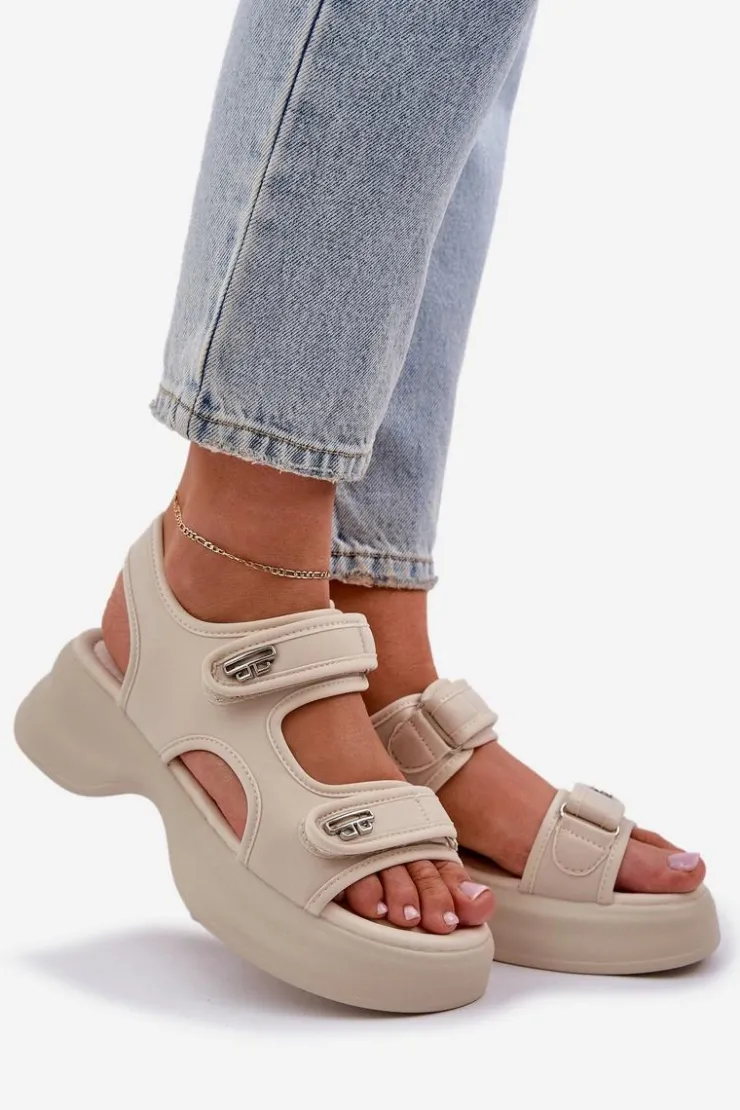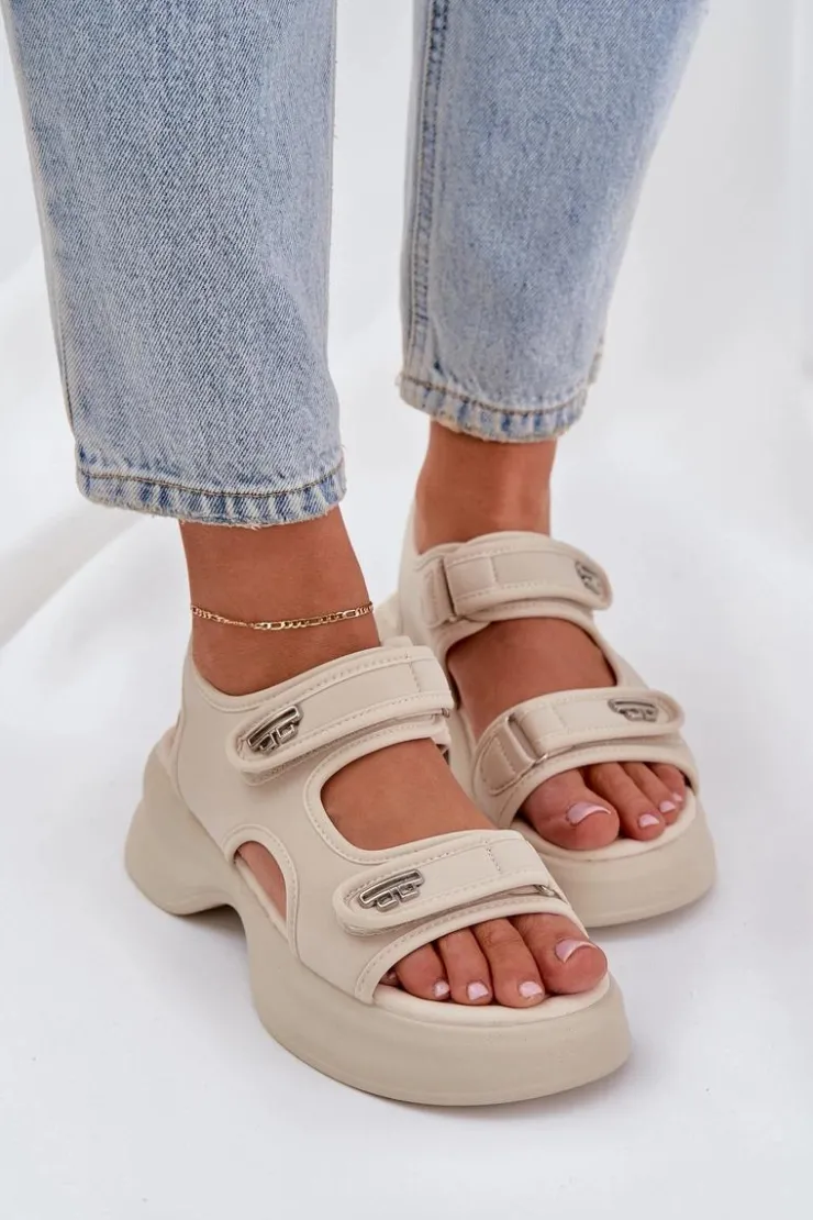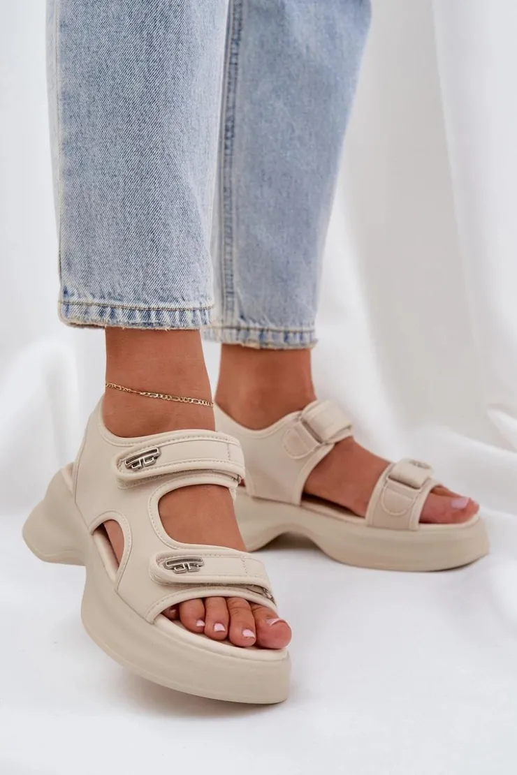 Stylowe sandały wykonane z materiału tekstylnego to świetny wybór na ciepłe dni. Osadzone na platformie, zapewniają wygodę i lekkość przy każdym kroku. Zapinane na podwójny rzep. Ozdobione subtelnymi detalami, które nadają im modnego charakteru. Miękka wkładka gwarantuje komfort przez cały dzień. Te sandały idealnie dopasujesz do wielu letnich stylizacji. Przy wyborze rozmiaru prosimy sugerować się tabelą rozmiarów.