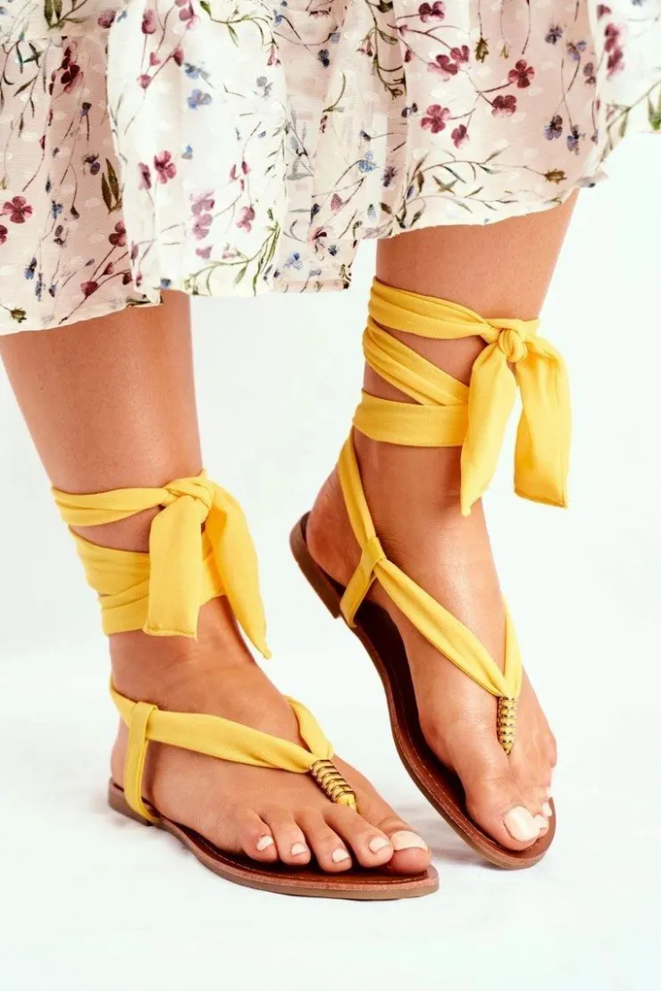 Boto Sandały Płaskie*Sandałki Damskie Japonki Wiązane Żółte Derryl
