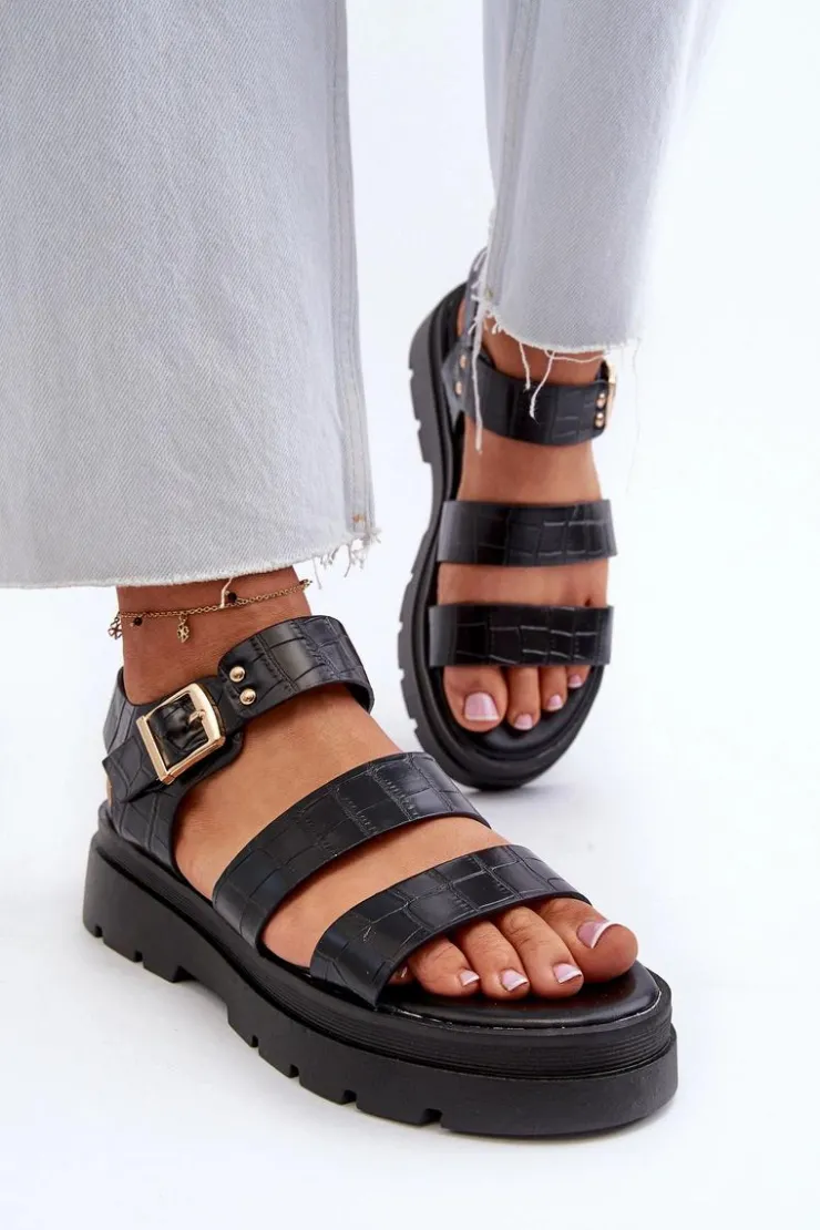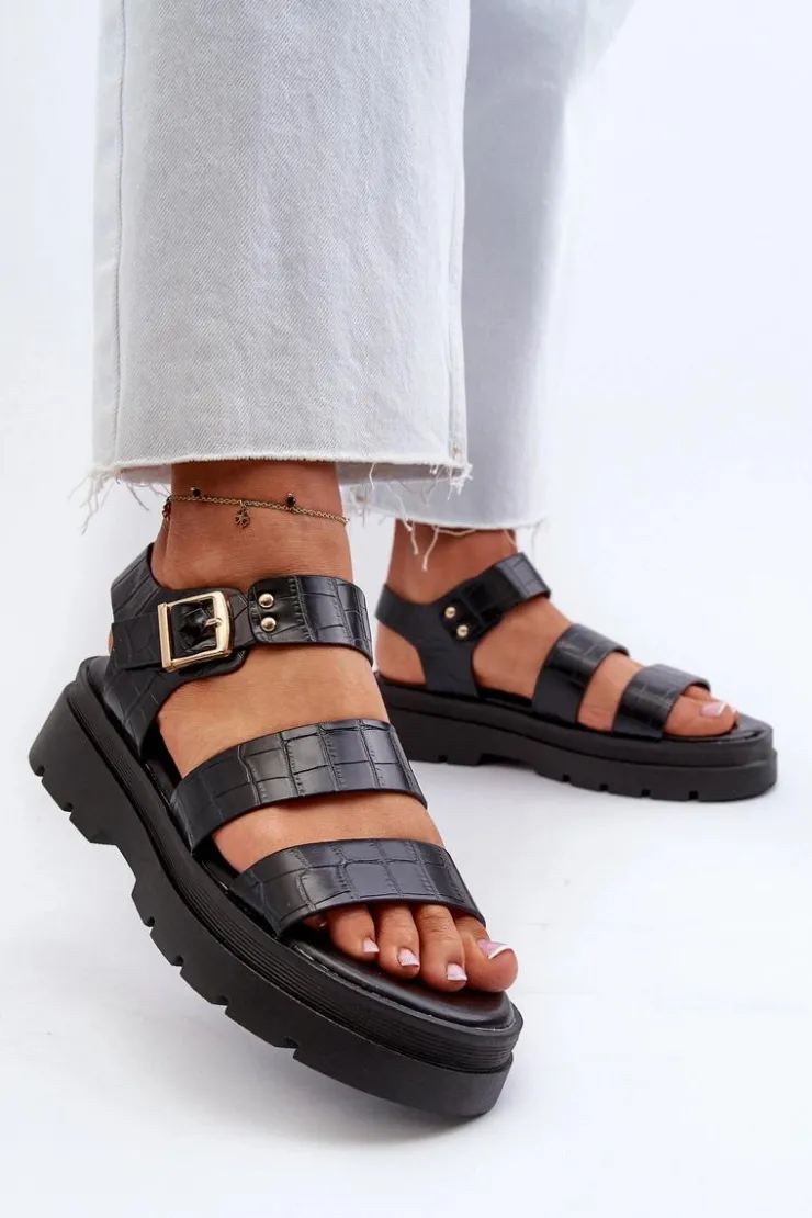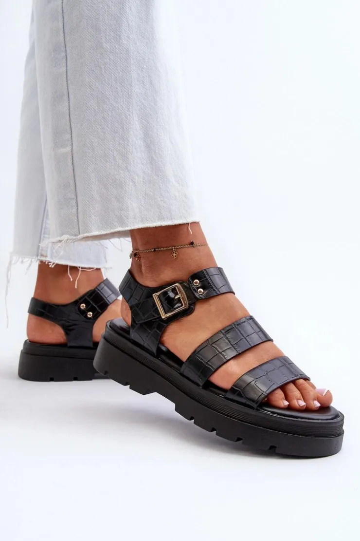 Modne sandały damskie na grubej podeszwie wykonane z eko skóry to idealny wybór na letnie dni. Zapinane na regulowany pasek ze sprzączką, gwarantują doskonałe dopasowanie do stopy. Dodatkowo ich designerski wygląd sprawia, że doskonale komponują się z różnymi stylizacjami, dodając im nuty nowoczesności i świeżości. Przy wyborze rozmiaru prosimy sugerować się tabelą rozmiarów.