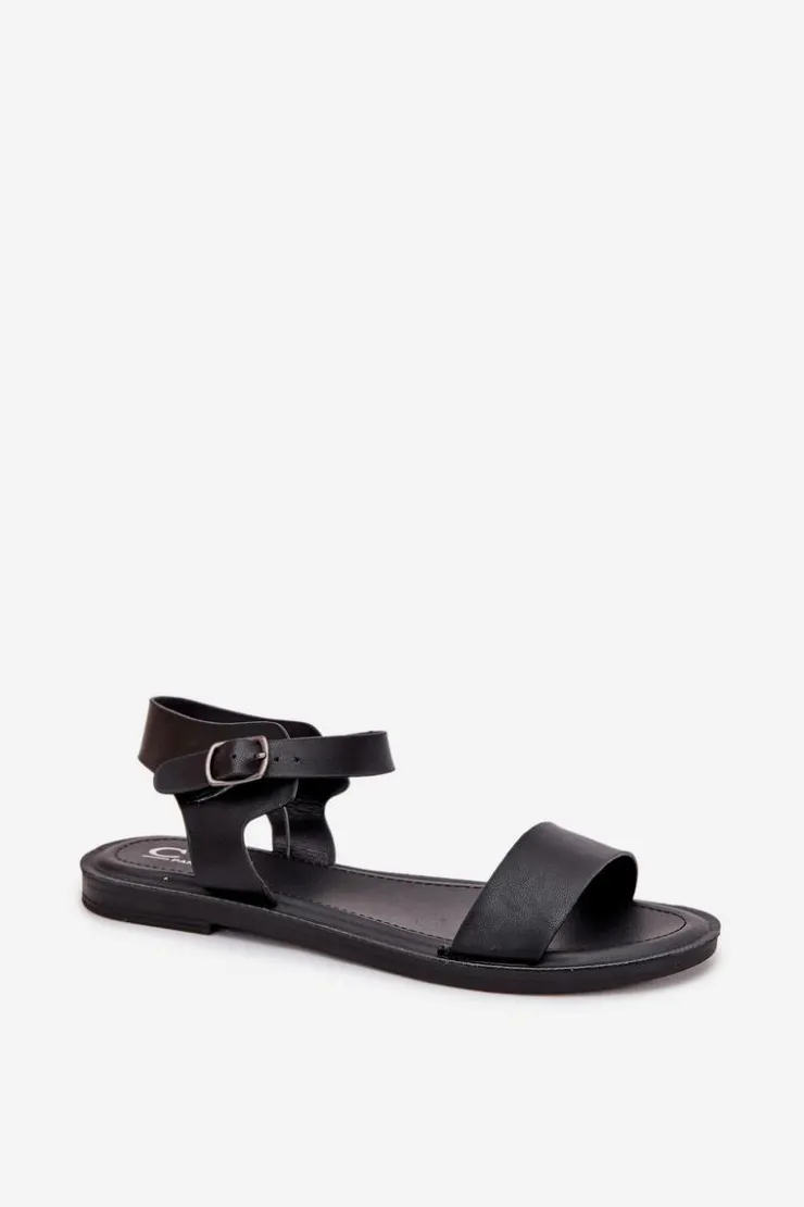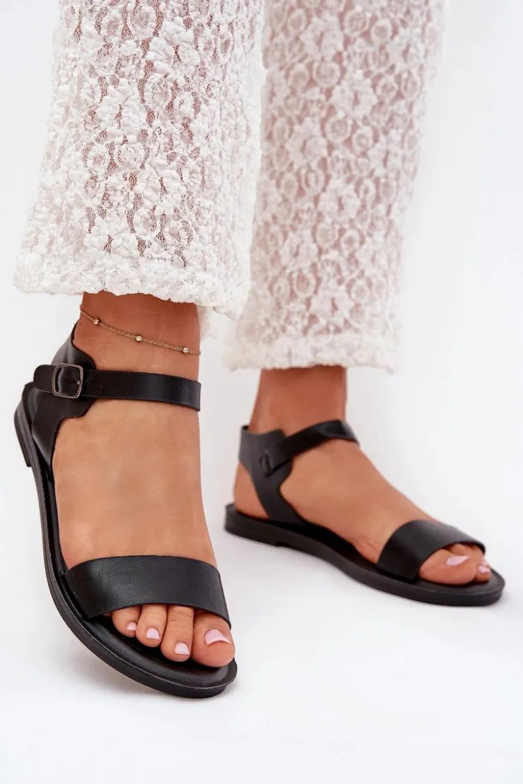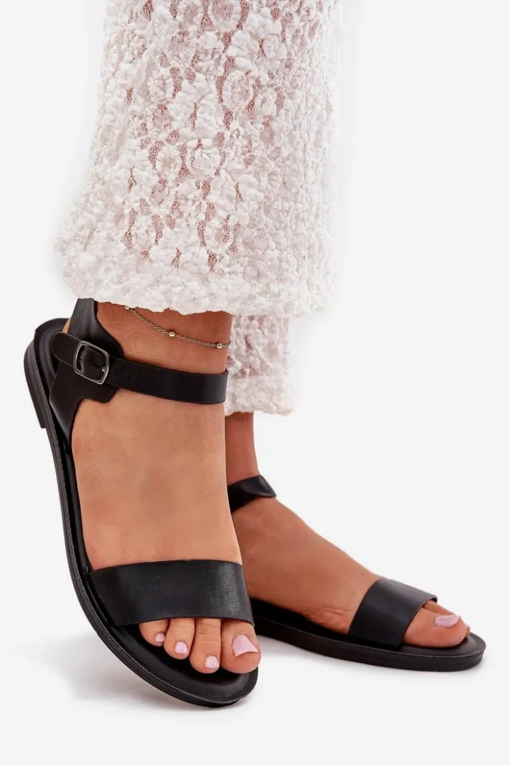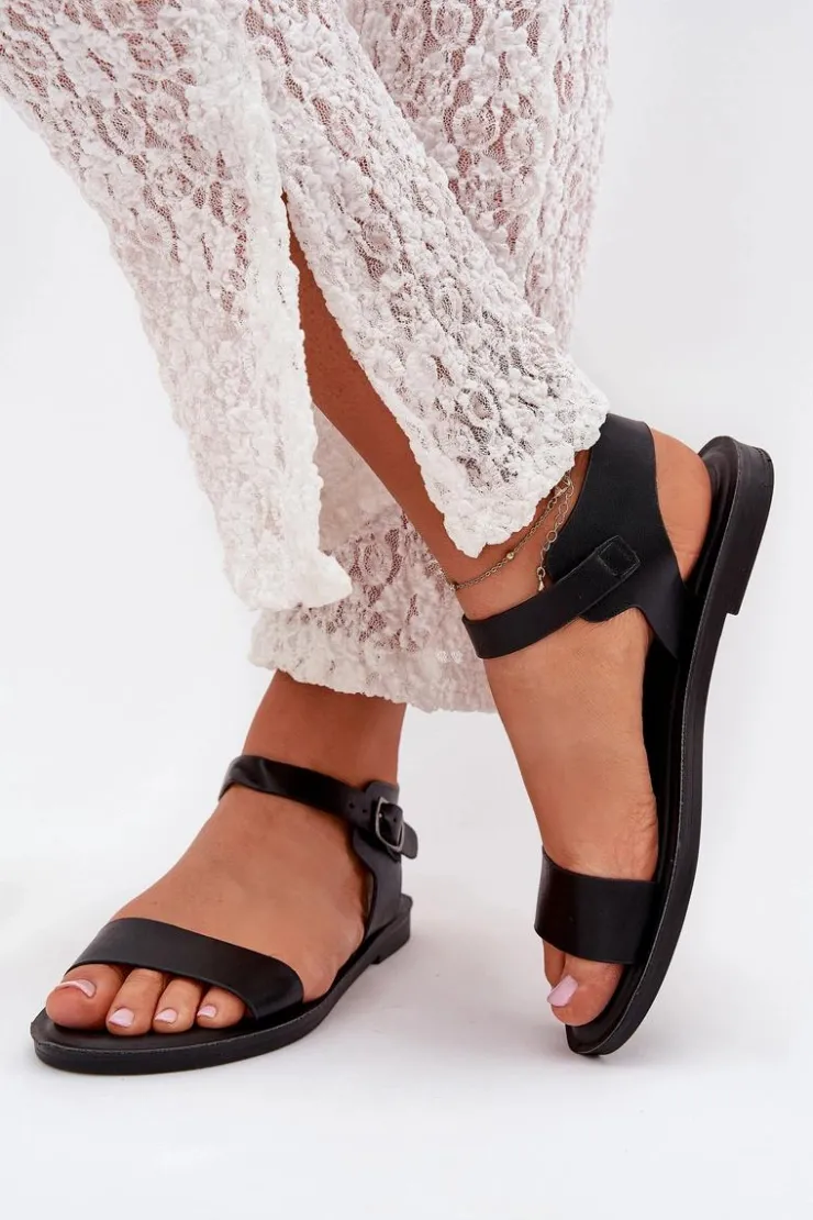 Boto Sandały Płaskie*Sandały Damskie Na Płaskim Obcasie Eko Skórzane Czarne Kivara