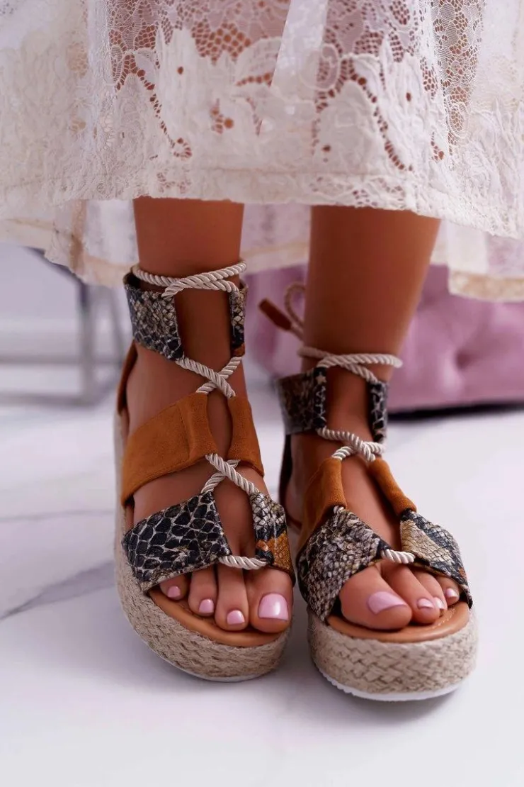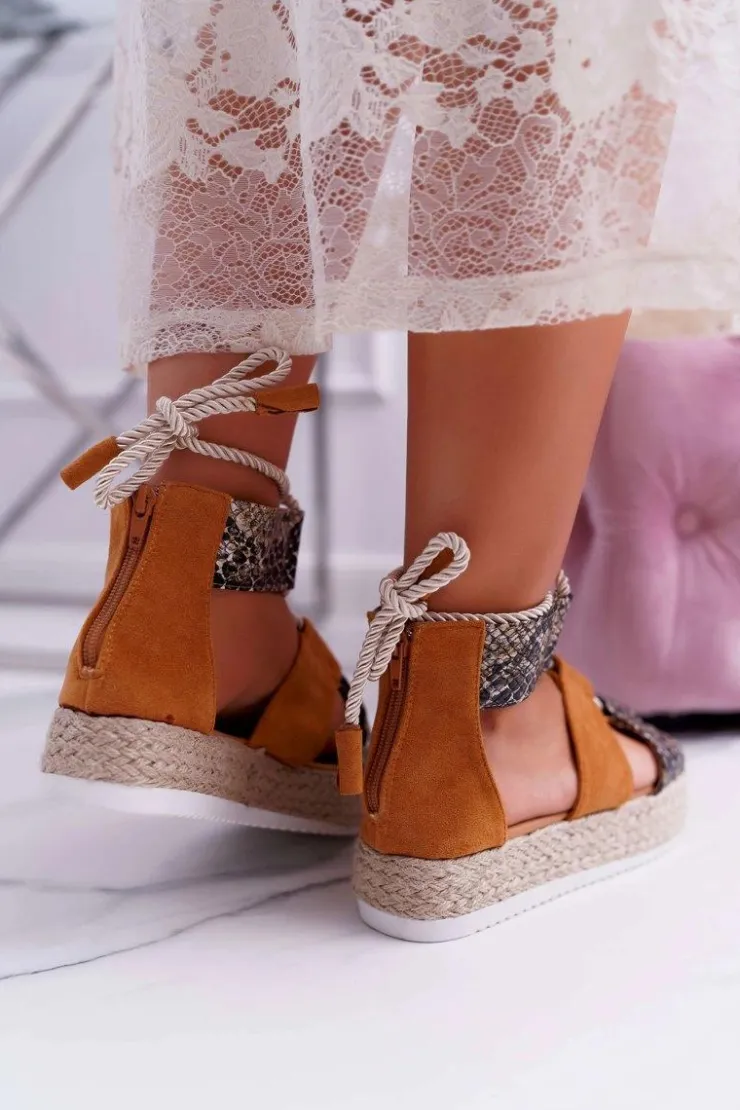 Boto Sandały Płaskie*Sandały Damskie na Platformie Camel Ergola