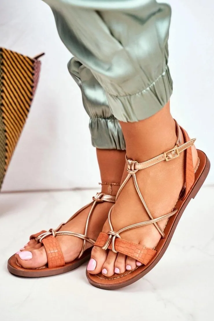 Boto Sandały Płaskie*Sandały Damskie Płaskie Pomarańczowe Alison