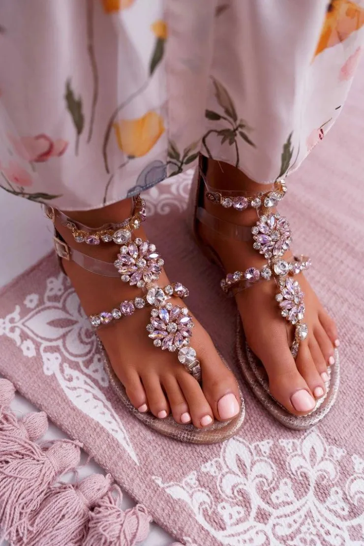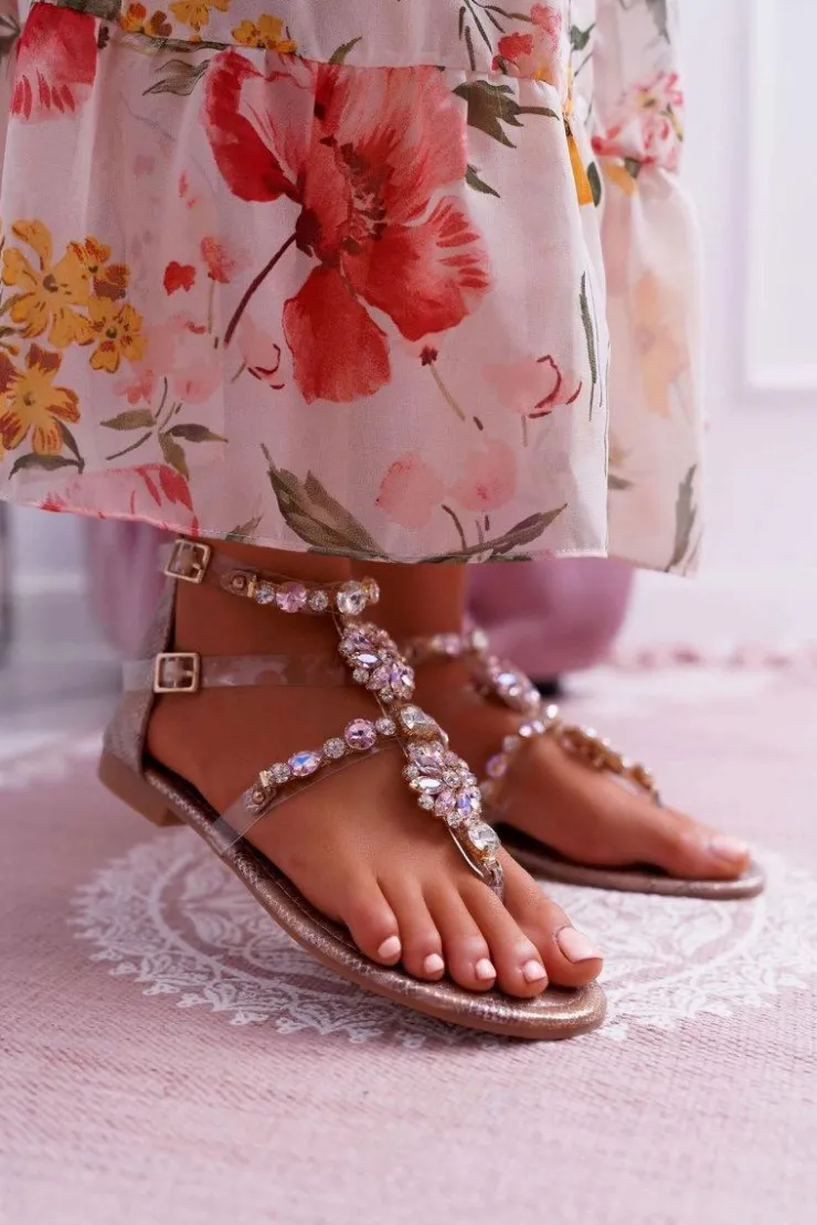 Boto Sandały Płaskie*Sandały Damskie Płaskie Z Cyrkoniami Champagne Karra