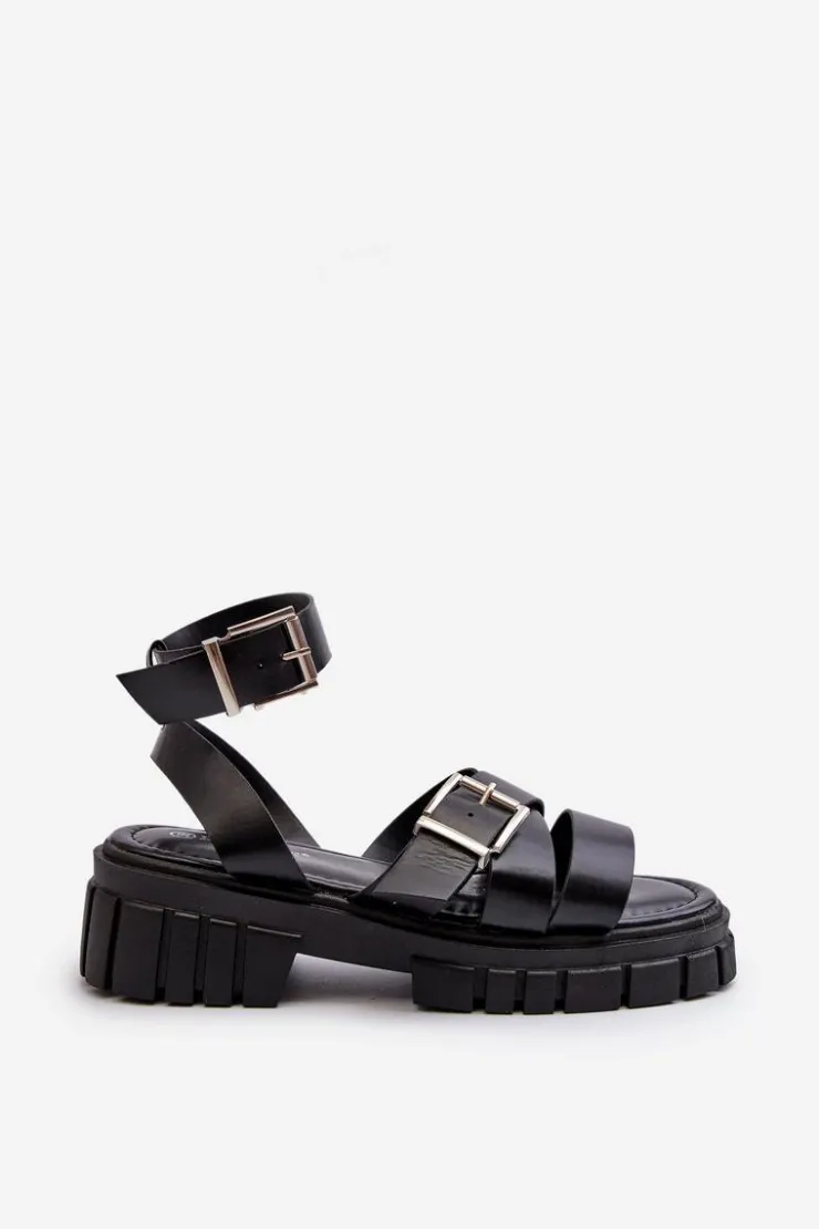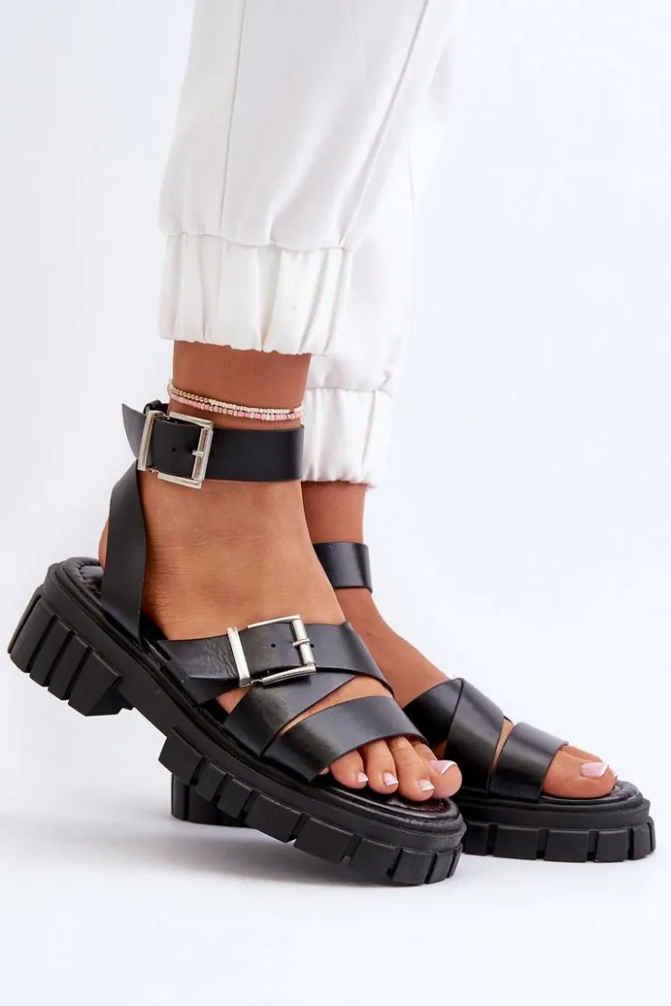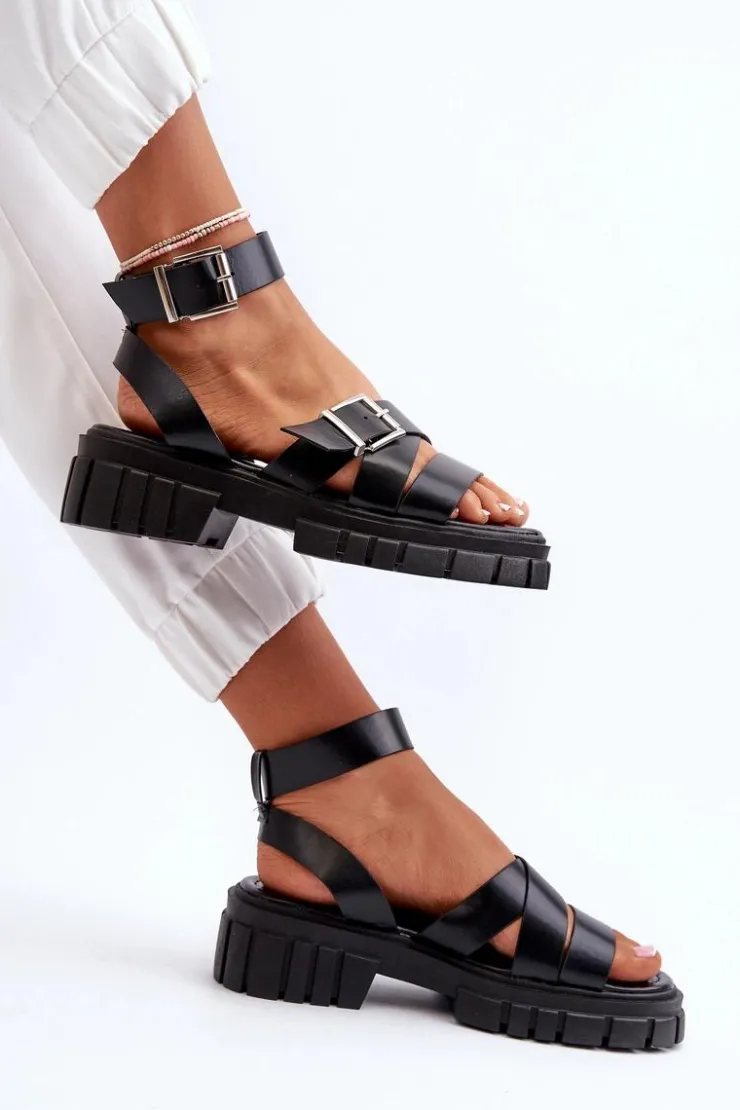 Sandały damskie wykonane z eko skóry. Osadzone na platformie i płaskim obcasie, zapewniają stabilność i wygodę podczas chodzenia. Zapinane na regulowany pasek ze sprzączką, gwarantują idealne dopasowanie do stopy. Dodatkowo miękka wkładka sprawia, że nawet długie spacery będą komfortowe i przyjemne. Idealne na letnie dni i wieczorne wyjścia! Przy wyborze rozmiaru prosimy kierować się tabelą rozmiarów.