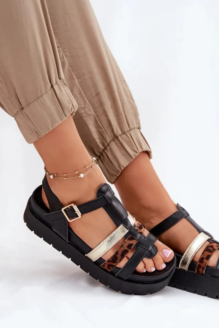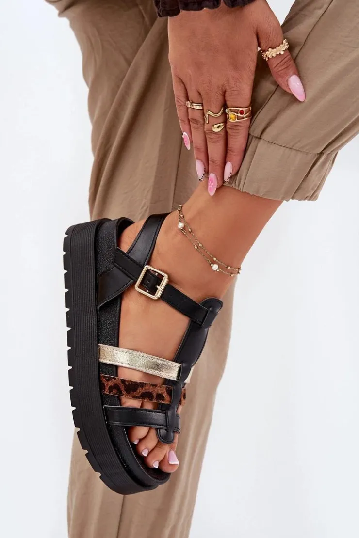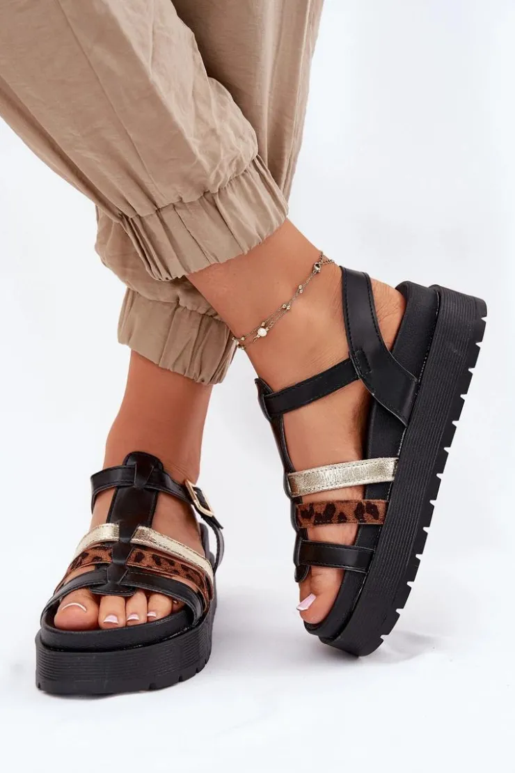 Sandały damskie wykonane z eko skóry, które nie tylko świetnie się prezentują, ale także delikatnie wydłużą sylwetkę dzięki platformie. Model ten zapinany jest na klamrę z regulowanym paskiem, co pozwala na idealne dopasowanie do stopy. Z przodu znajdują się trzy smukłe paseczki. Model ten to doskonały wybór na ciepłe, letnie dni! Przy wyborze rozmiaru prosimy kierować się tabelą rozmiarów.