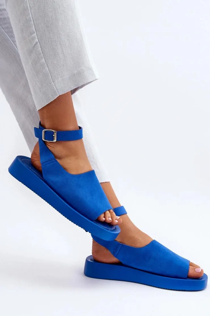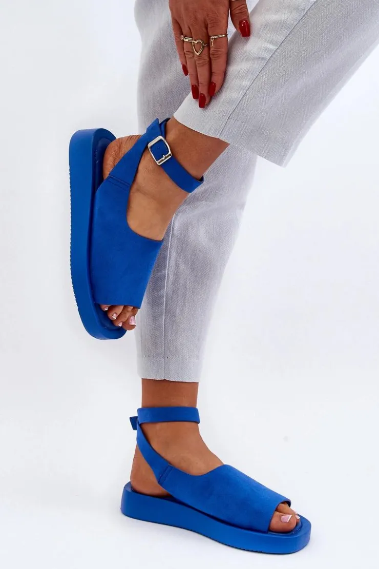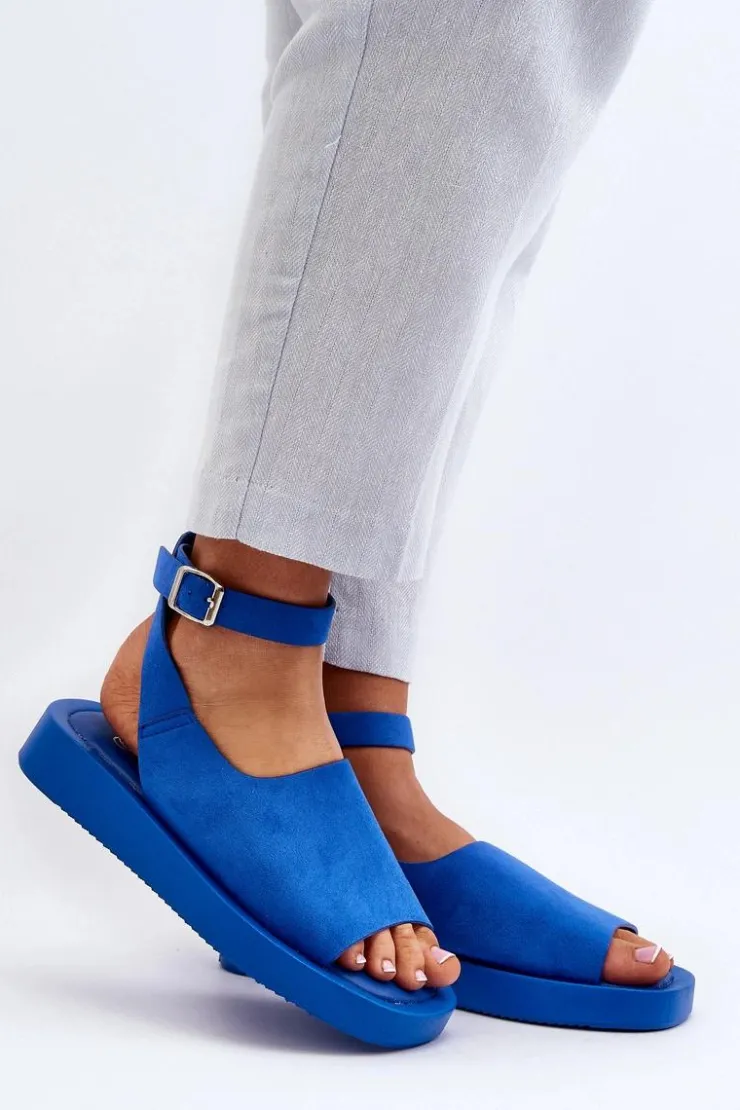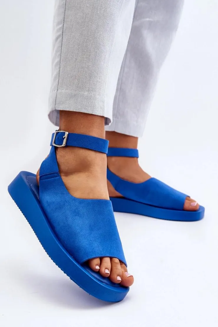 Wyjątkowe sandały damskie na platformie. Buty te zostały wykonane z miłego w dotyku eko zamszu. Posiadają miękką, eko skórzaną wkładkę. Sandałki są zapinane wokół kostki na regulowany pasek ze sprzączką. Ten niezwykły model z pewnością wzbogaci Twoją letnią garderobę! Przy wyborze rozmiaru prosimy sugerować się tabelą rozmiarów.
