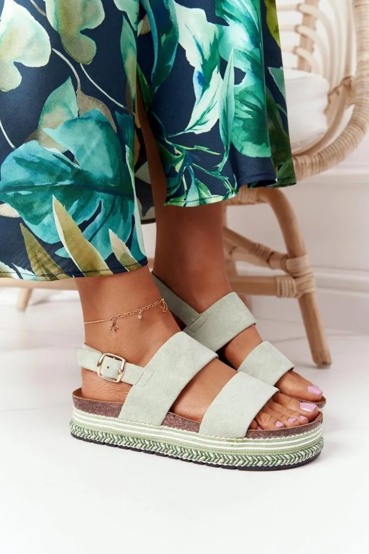 Wyjątkowe sandały na zdobionej platformie. Sandały zostały wykonane z eko zamszu, posiadają delikatnie profilowaną wkładkę. Wyjątkowy model wzbogaci Twoją letnią garderobę! Przy wyborze rozmiaru prosimy sugerować się tabelą rozmiarów.