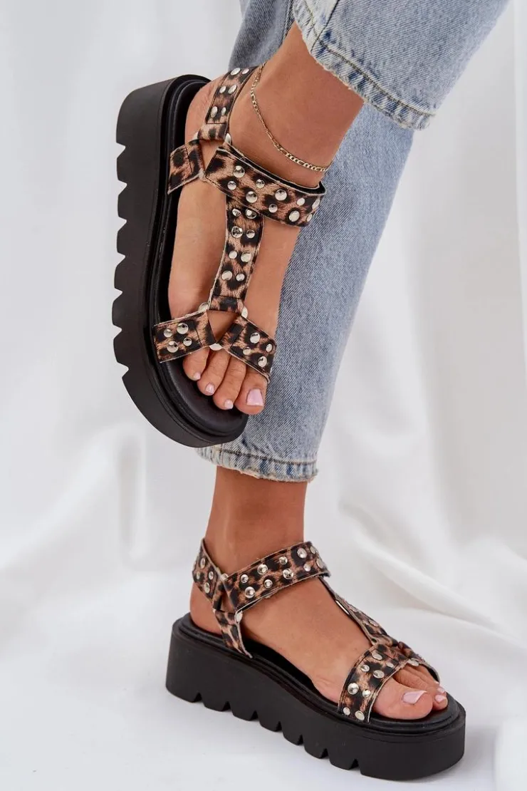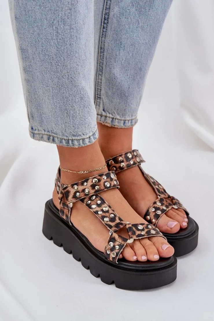 Lekkie, zdobione sandały damskie z eko skóry to świetna propozycja na ciepłe dni. Osadzone na platformie, zapewniają komfort i stabilność, dodając lekkości każdemu krokowi. Zapinane na rzep, co ułatwia ich zakładanie i dopasowanie do stopy. Zdobienia na cholewce dodają im subtelnego, modnego charakteru. Model ten doskonale dopełni Twoje letnie stylizacje! Przy wyborze rozmiaru prosimy sugerować się tabelą rozmiarów.