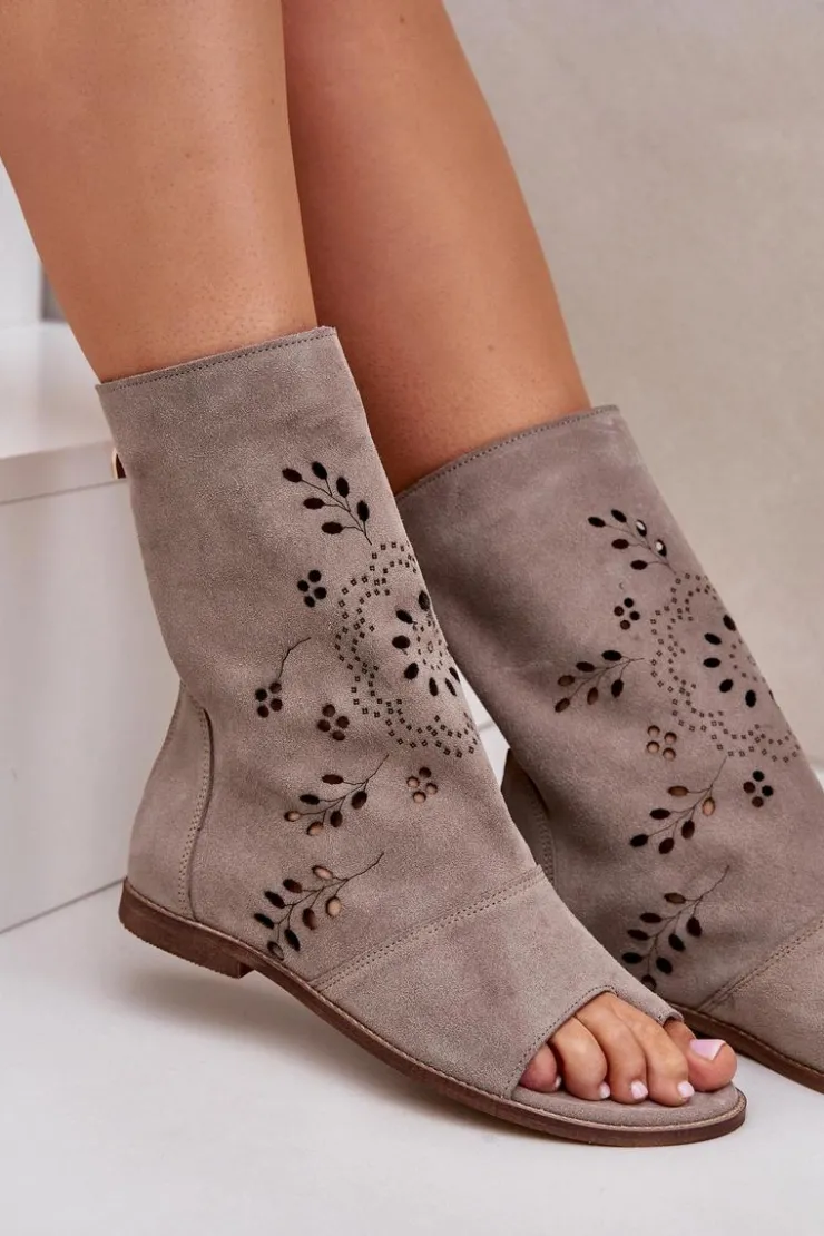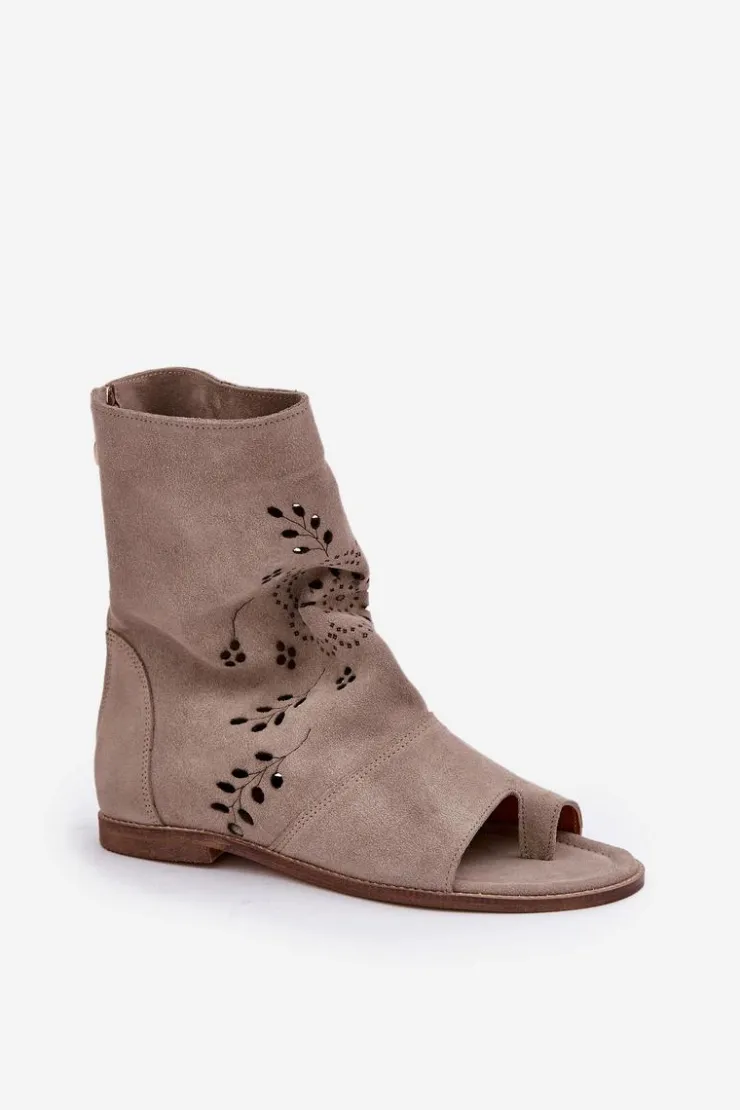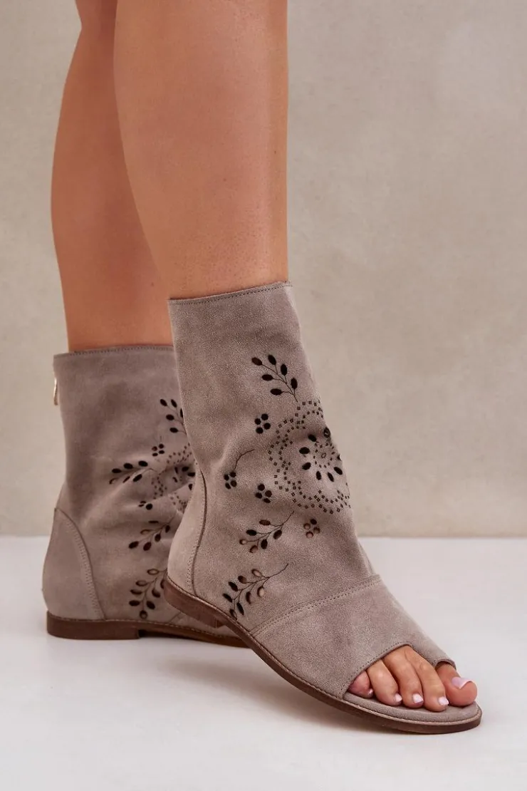 Te wyjątkowe sandały na płaskim obcasie to połączenie elegancji i wygody. Wykonane z wysokiej jakości naturalnego zamszu zapewniają trwałość i komfort noszenia. Ich cholewka, zapinana na zamek, ozdobiona jest ażurowym wzorem, który nadaje im delikatności i stylu. Doskonale sprawdzą się zarówno na co dzień, jak i na specjalne okazje, dodając Twojej stylizacji wyjątkowego uroku. Przy wyborze rozmiaru prosimy sugerować się tabelą rozmiarów.