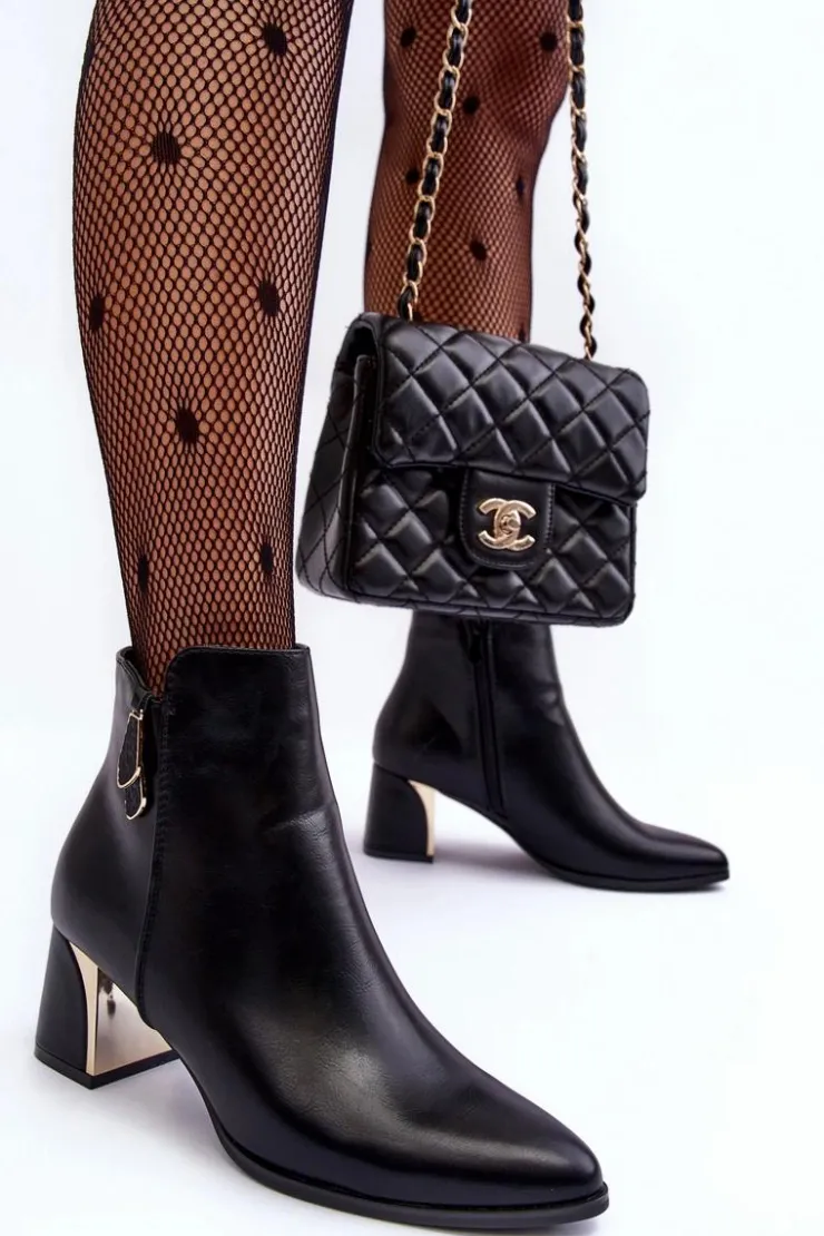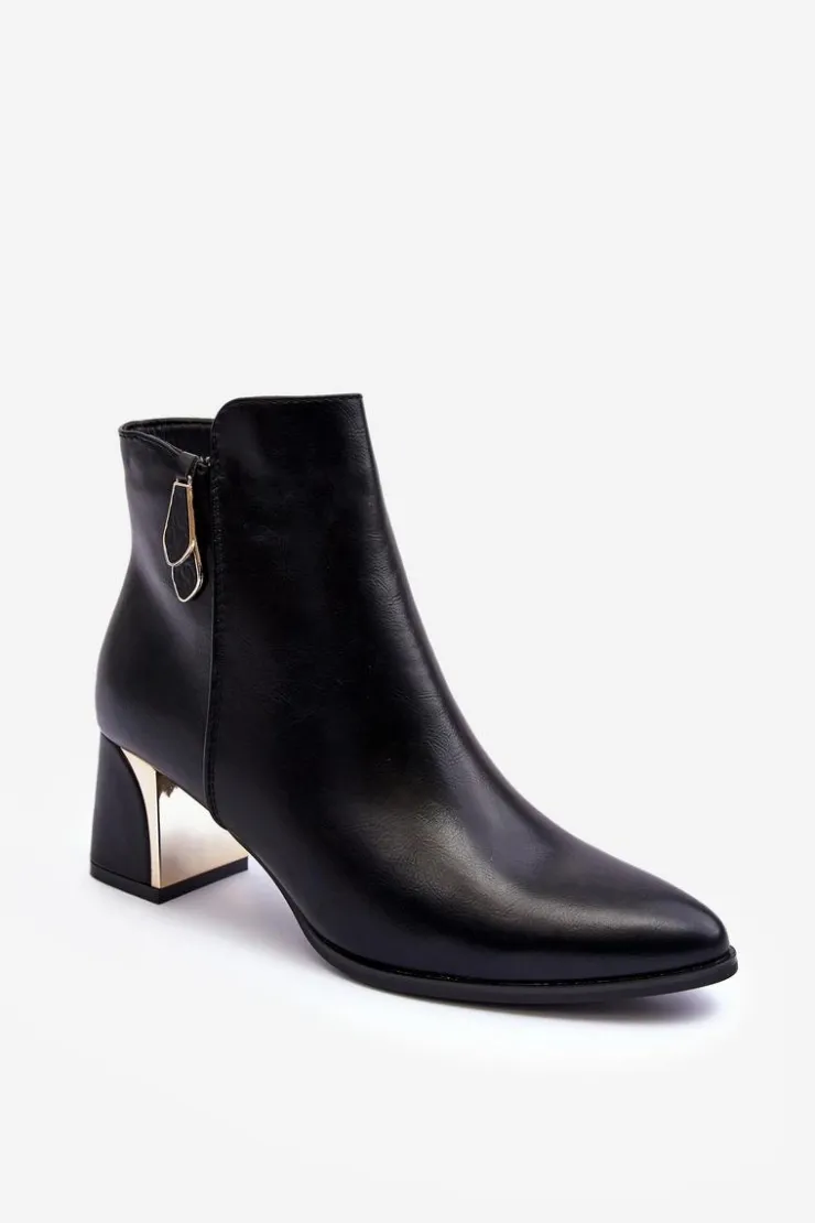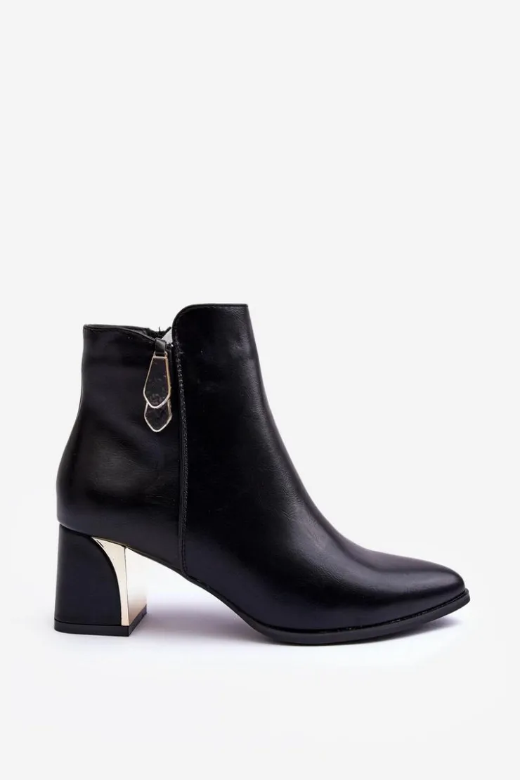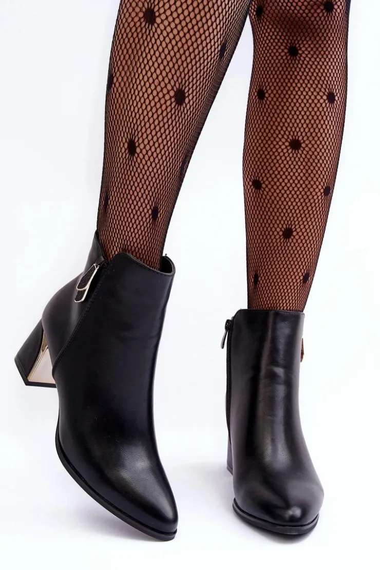 Botki damskie osadzone na obcasie w postaci słupka. Cholewka zapinana na suwak. Wykonane z eko skóry. Środek ocieplony kocem obuwniczym. Noski w szpic, usztywniony zapiętek. Idealne do wielu jesienno-zimowych stylizacji! Koniecznie sprawdź także pozostałe modele botków dostępnych w naszej ofercie. Przy wyborze rozmiaru prosimy sugerować się tabelą rozmiarów.