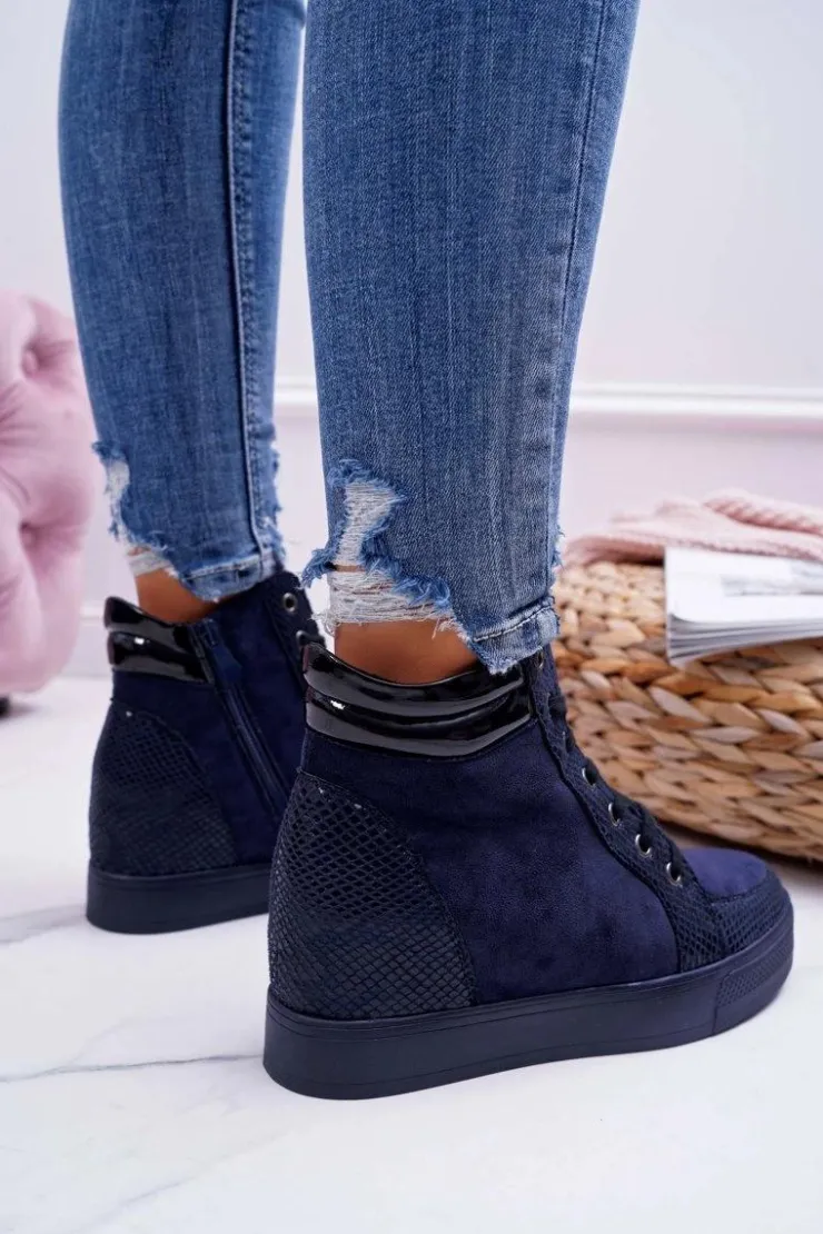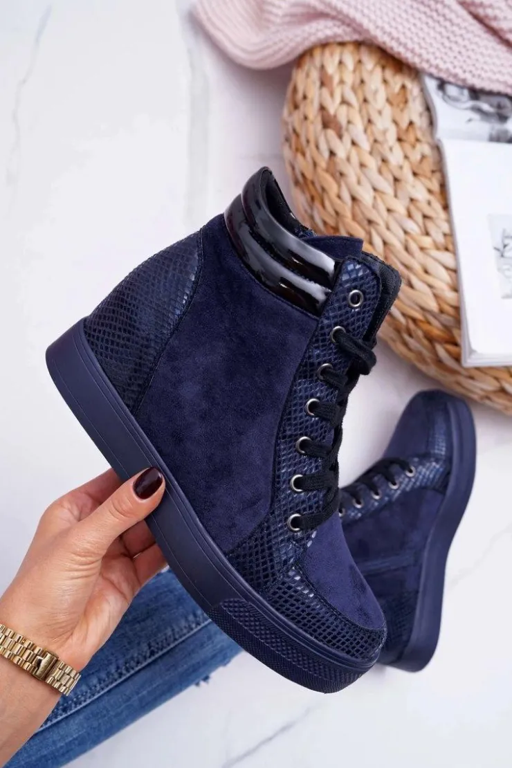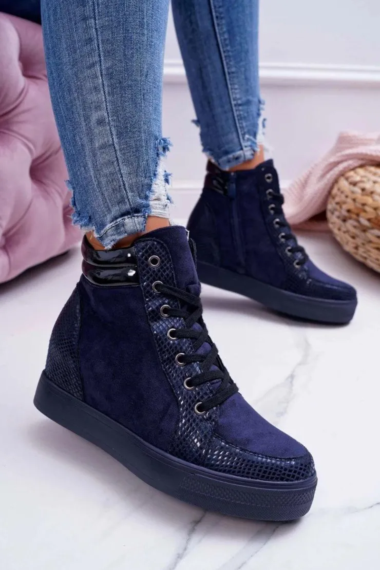 Boto Sneakersy Damskie Ukryty Koturn Granatowe Ferrer