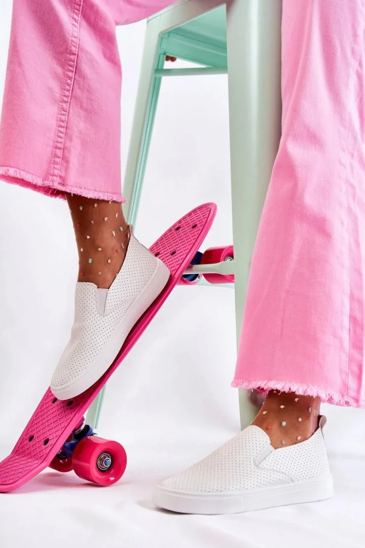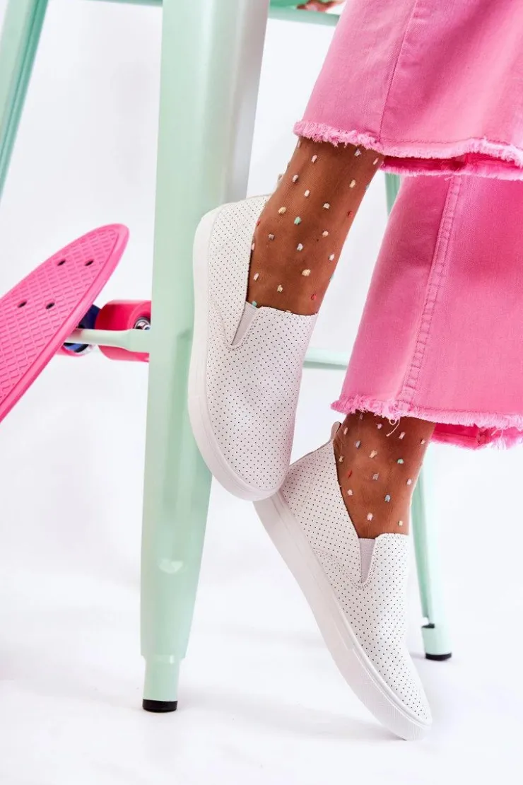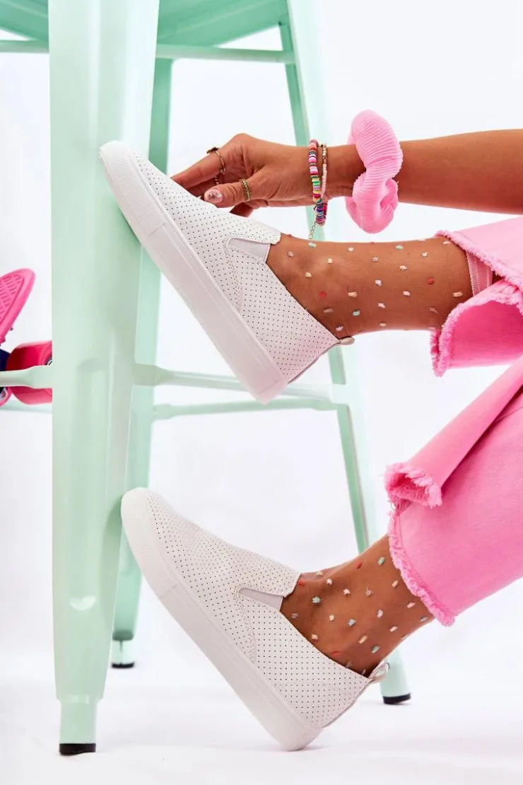 Półbuty damskie na grubej, gumowej platformie. Buty wykonane z dobrej jakości eko skóry z wycięciami. Buty są bardzo wygodne i lekkie. Model wsuwany, posiada pętelkę, która ułatwia zakładanie oraz wstawki po bokach. Nosek okrągły. Idealne do wielu stylizacji. Przy wyborze rozmiaru prosimy kierować się tabelą rozmiarów.