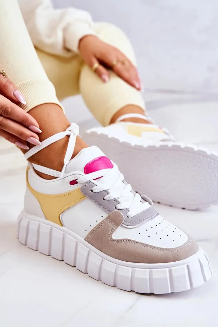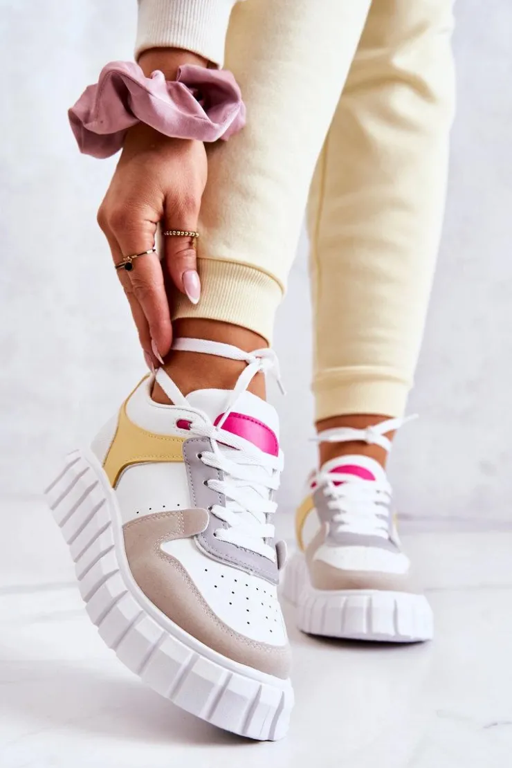 Buty sportowe, które koniecznie musisz mieć! Wykonane z połączenia wysokiej jakości eko skóry oraz eko zamszu. Osadzone na masywnej platformie ze żłobieniami po bokach. Delikatne perforacje z przodu oraz po bokach. Sneakersy posiadają wiązanie na płaskie sznurowadła, dzięki któremu można je idealnie dopasować. Miękka wkładka została wykonana z materiału i jest dodatkowo wyciągana. Koniecznie musisz je mieć w swojej szafie! Przy wyborze rozmiaru prosimy kierować tabelą rozmiarów.