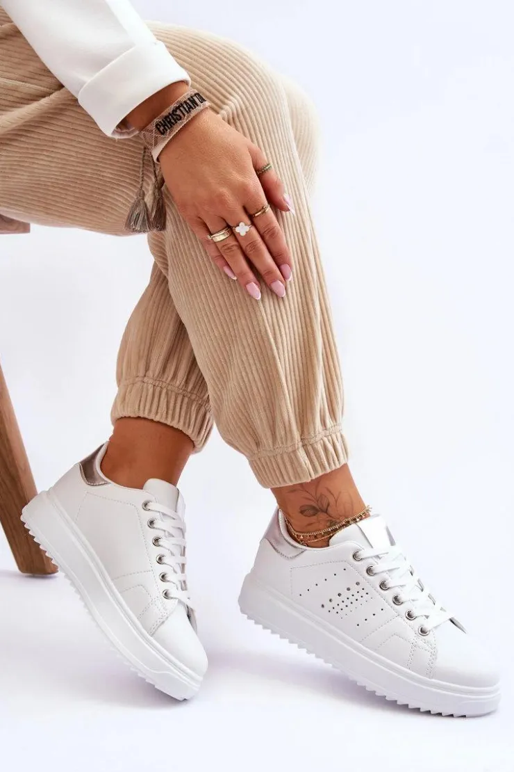 Damskie buty sportowe zostały wykonane z eko skóry. Model ten świetnie sprawdzi się na co dzień, do pracy czy szkoły. Sportowe buty posiadają masywną platformę oraz wykonaną z tkaniny wkładkę. Model klasycznie sznurowany pozwoli na odpowiednie dopasowanie obuwia do tęgości nogi. Przy wyborze rozmiaru prosimy kierować się tabelą rozmiarów.